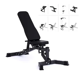 • multifunkční lavice s bicepsovou opěrkou a kopačem