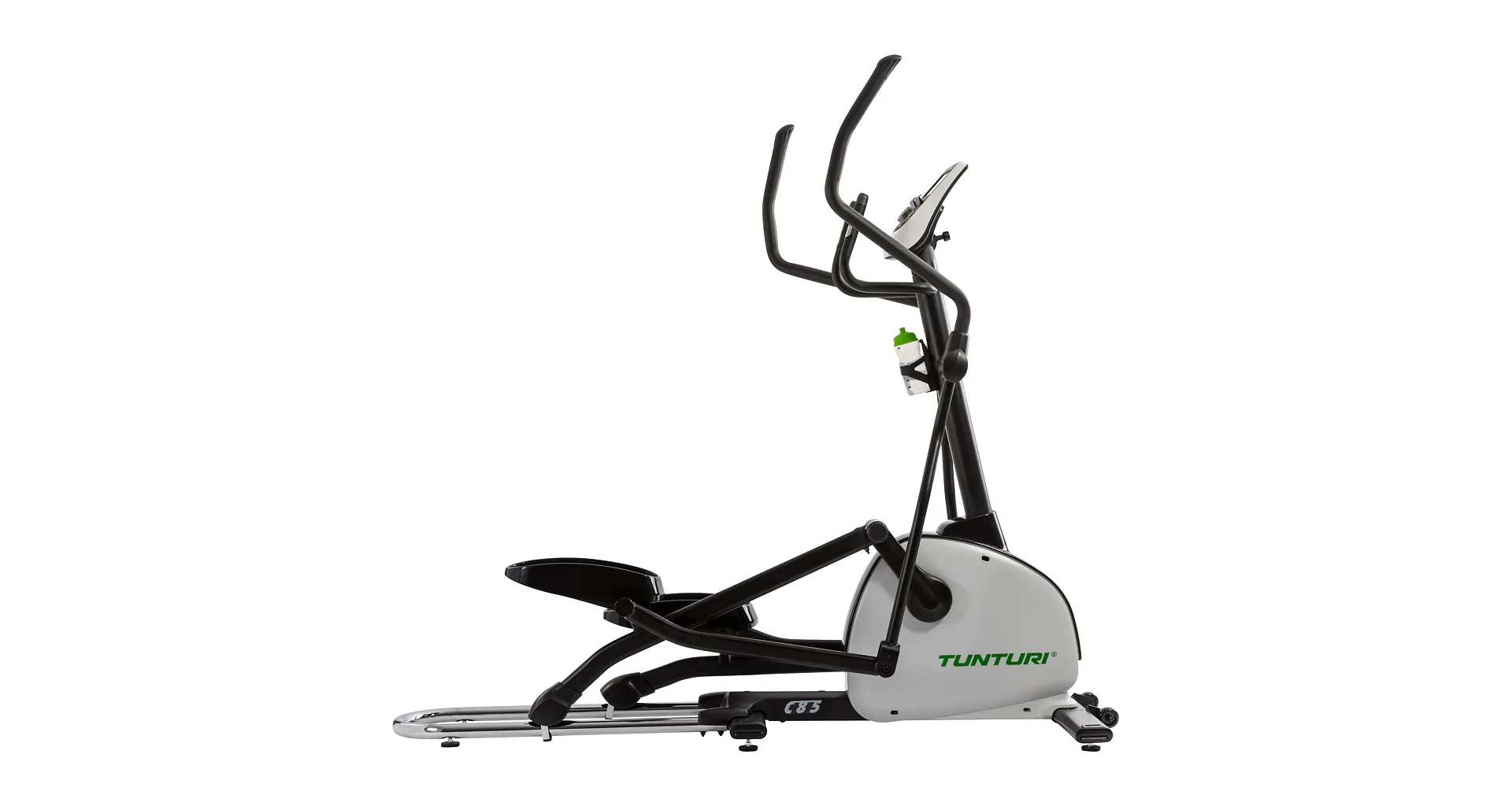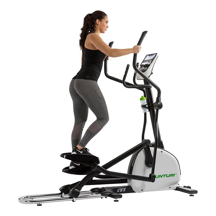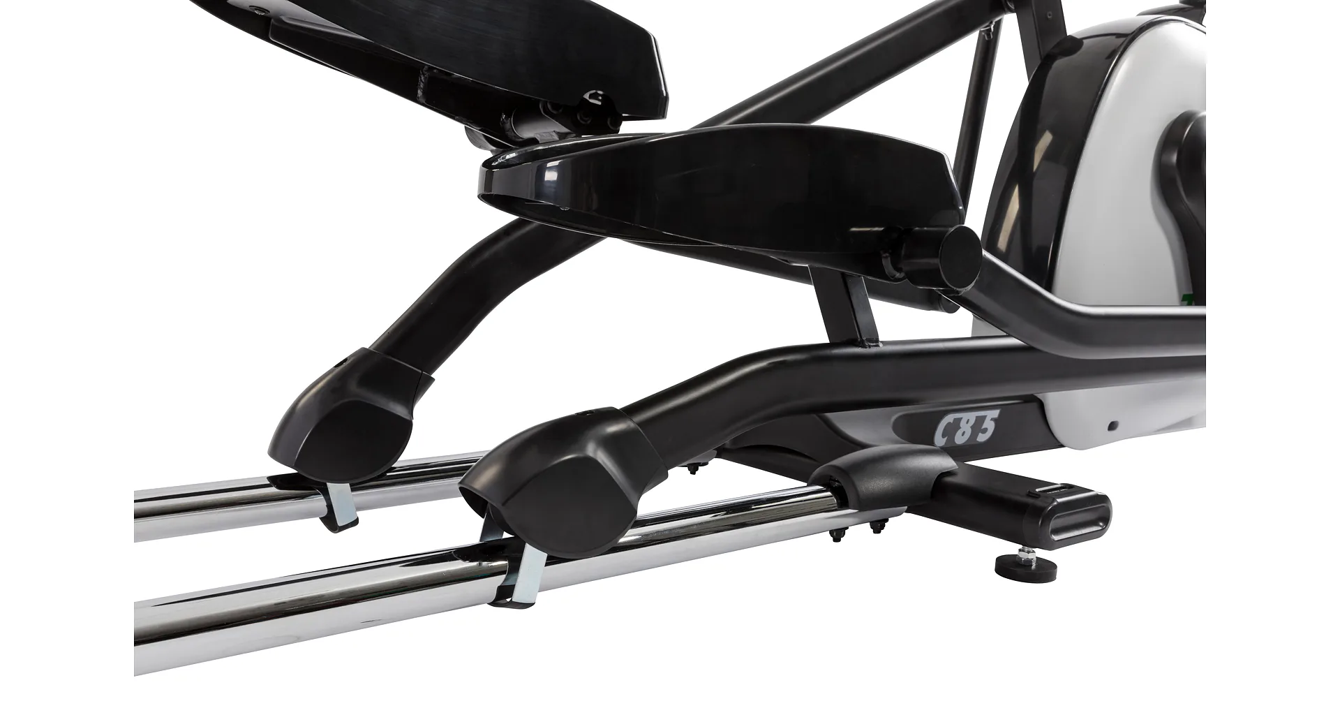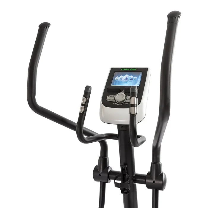 Dobrý den, eliptické trenažéry této řady TUNTURI C25/55/85 máme na prodejně vystavené a bez problému vyhovují i na 200 cm vysoké osoby jak výškově, tak ergonomicky s ohledem na komfort pohybu. Co se týče pevných madel se snímači tepu, bez problému na ně dosáhnete, ale prakticky se v podstatě nevyužívají - kdo chce rozumně měřit tep, stejně ke stroji dokupuje hrudní pás. Pedály mají rozměry 40 x 14 cm.