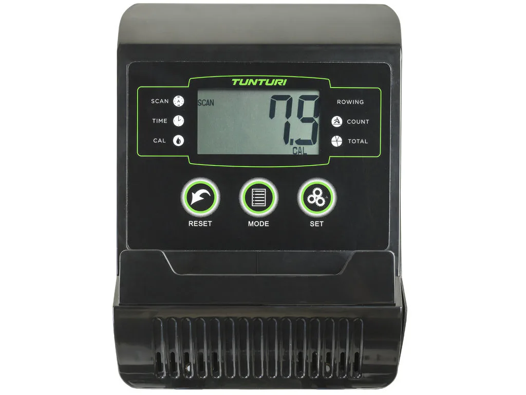 Značka Tunturi poskytuje už mnoho let ověřenou kvalitu zpracování a velký ohled pochopitelně věnuje optimálnímu nastavení, tedy vytvoření správné pohybové ergonomie. Nyní přichází značka Tunturi s novou řadu "TUNTURI STRENGTH", která přináší nové produkty s aktuálními technickými postupy a moderním desingem. Nový model veslovacího trenažéru TUNTURI Cardio Fit R30 Rower disponuje moderním, magnetickým brzdným systémem ovládaným otočným regulátorem, masivním rámem a komfortem posedu. Jednoduše ovladatelný a nastavitelný počítač, který je napájen tužkovými bateriemi, takže nejste omezeni připojením v místnosti.