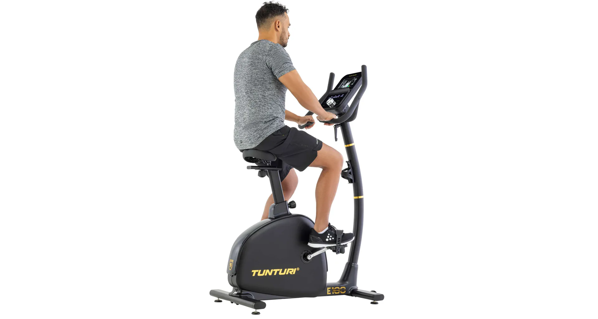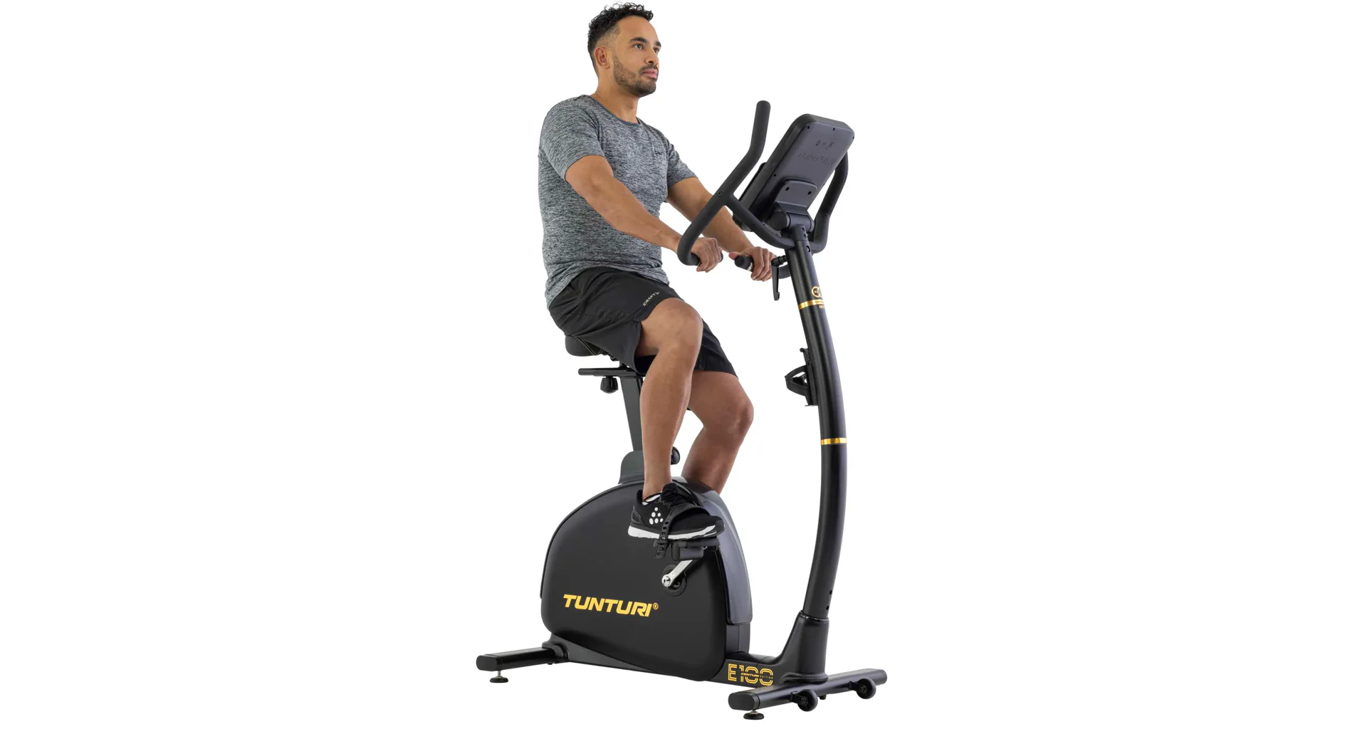 Bezpečný a stabilní tréninkModel E100 má bezpečný a nízký nástup. Díky tomu můžete cvičit bezpečně a zodpovědně, i když nemáte zkušenosti nebo jste omezeni v pohybu.