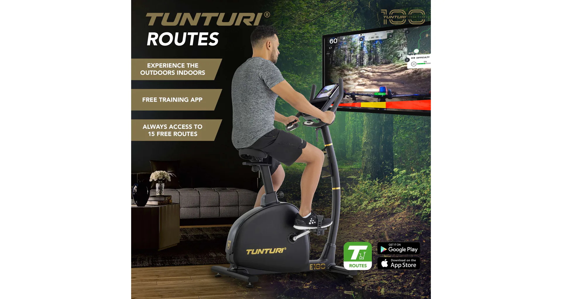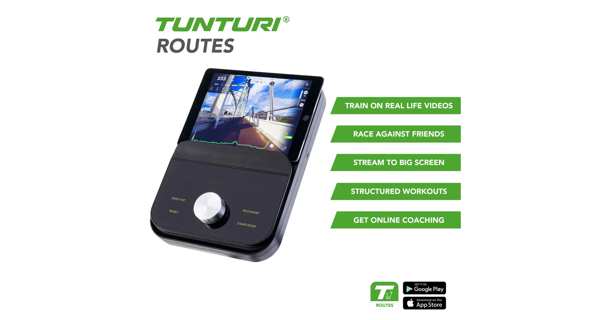 Vydejte se na výlet do přírody s bezplatnou aplikací Tunturi RoutesStoupáte na Alpe d'Huez na kole? Svištíte na lyžích po sněhu v Alpách? S aplikací Tunturi Routes zůstává trénink zábavou a výzvou. Bezplatná verze aplikace poskytuje vždy přístup k patnácti videotrasám. S prémiovou verzí Tunturi Routes si můžete vybrat ze stovek tisíc kilometrů tras po celém světě a stovek tréninkových videí. Váš trénink bude skutečným vizuálním zážitkem!