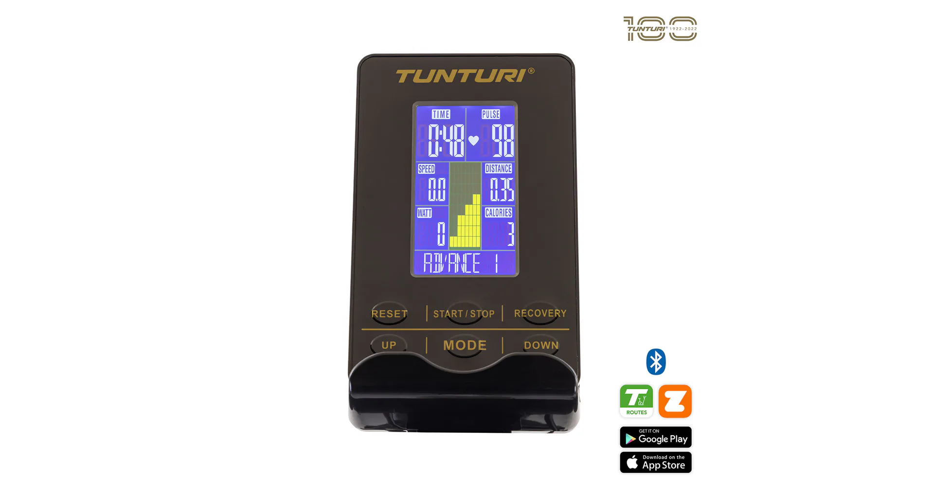 Aplikace ZwiftTento trenažér Tunturi spolupracuje s aplikací Zwift. To znamená, že se rychlost videa přizpůsobuje vašemu tempu. Kromě toho trenažér sleduje výškové rozdíly na videu a podle toho upravuje odpor. Parametry vašeho tréninku jsou také v reálném čase sdíleny se systémem Zwift, takže máte dobrý přehled o svém pokroku.