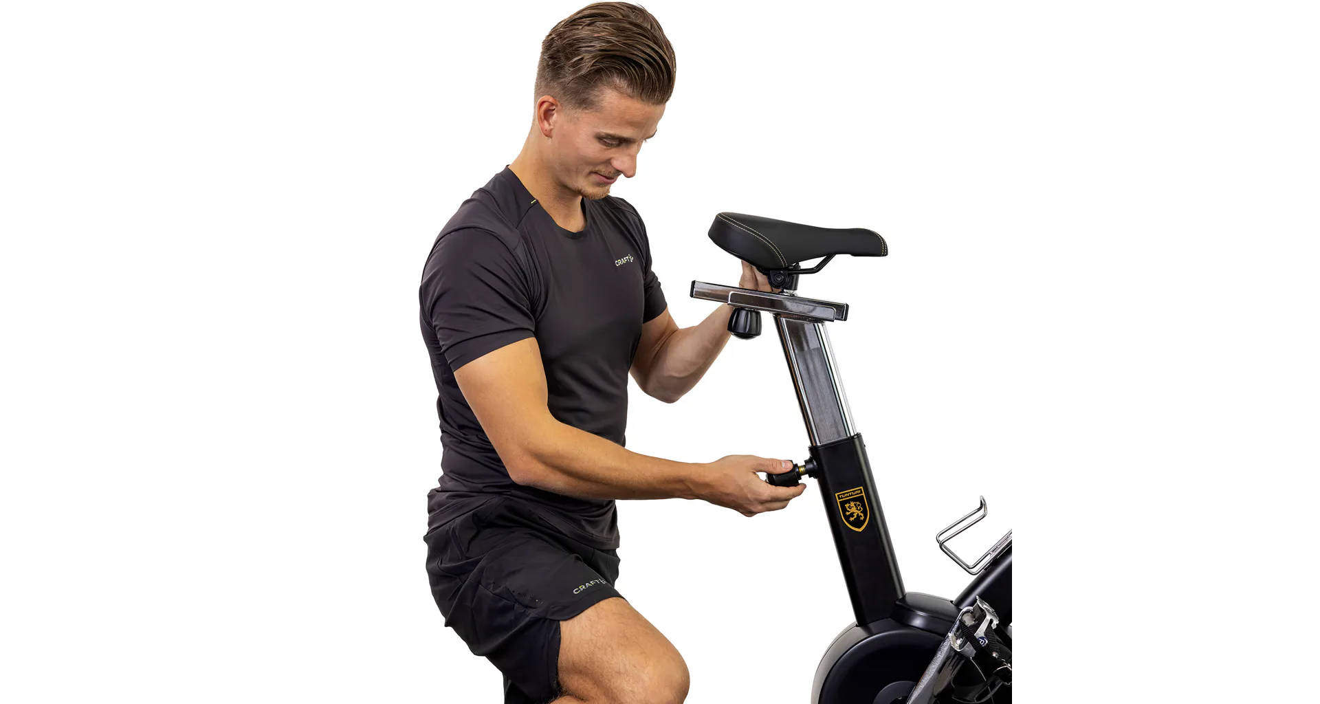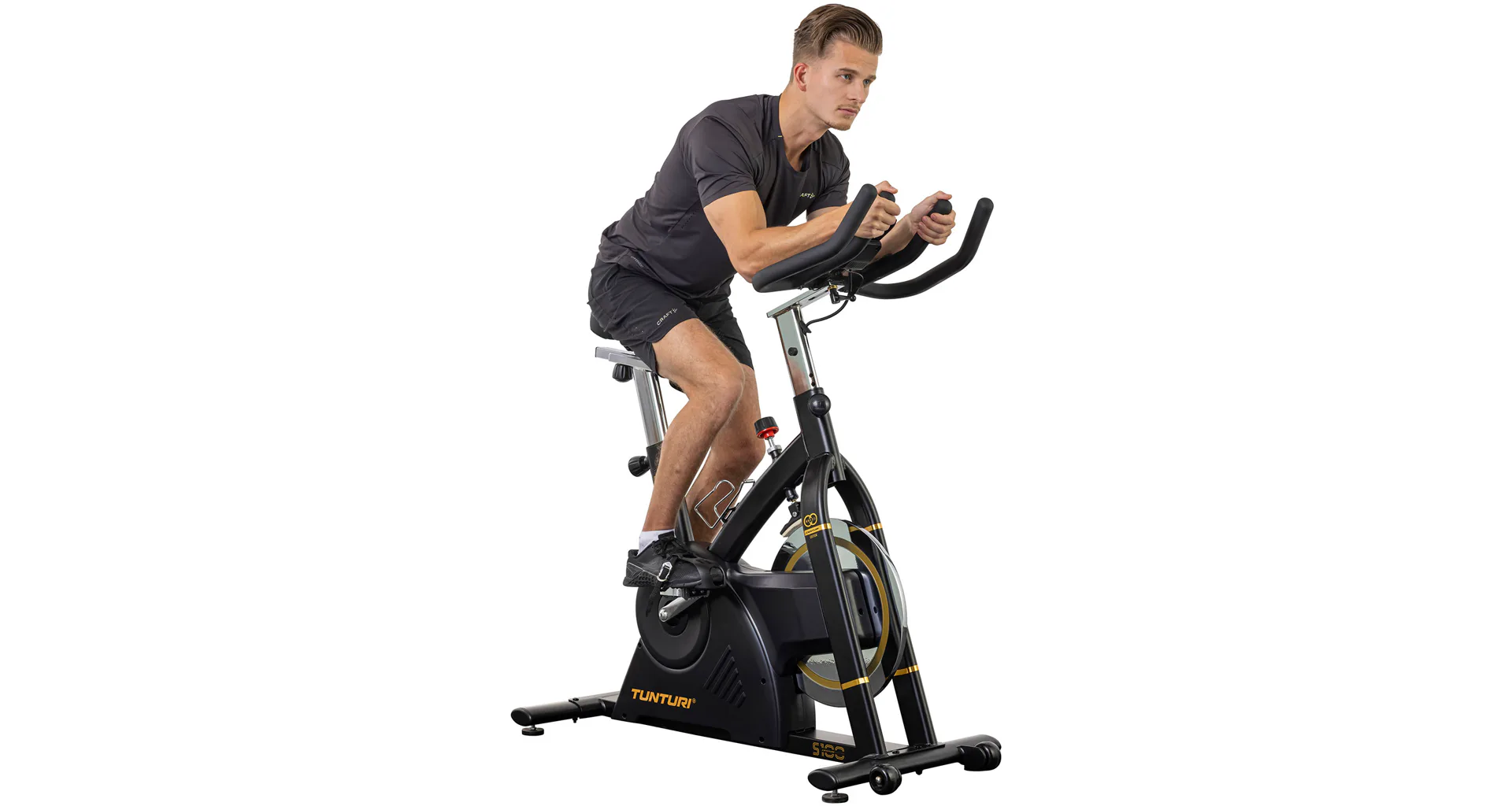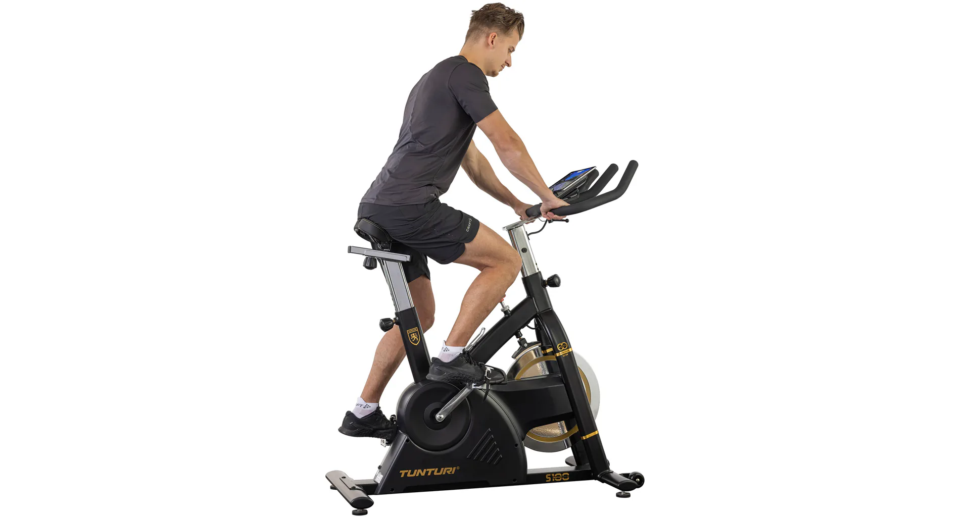 Cyklotrenažér TUNTURI Centuri S100. Jezděte doma na kole s modelem S100 Sprinter Bike z kolekce Centuri. S tímto robustním kolem s pevným rámem, velkým a těžkým setrvačníkem se vydáte vstříc nejvyšší výzvě.