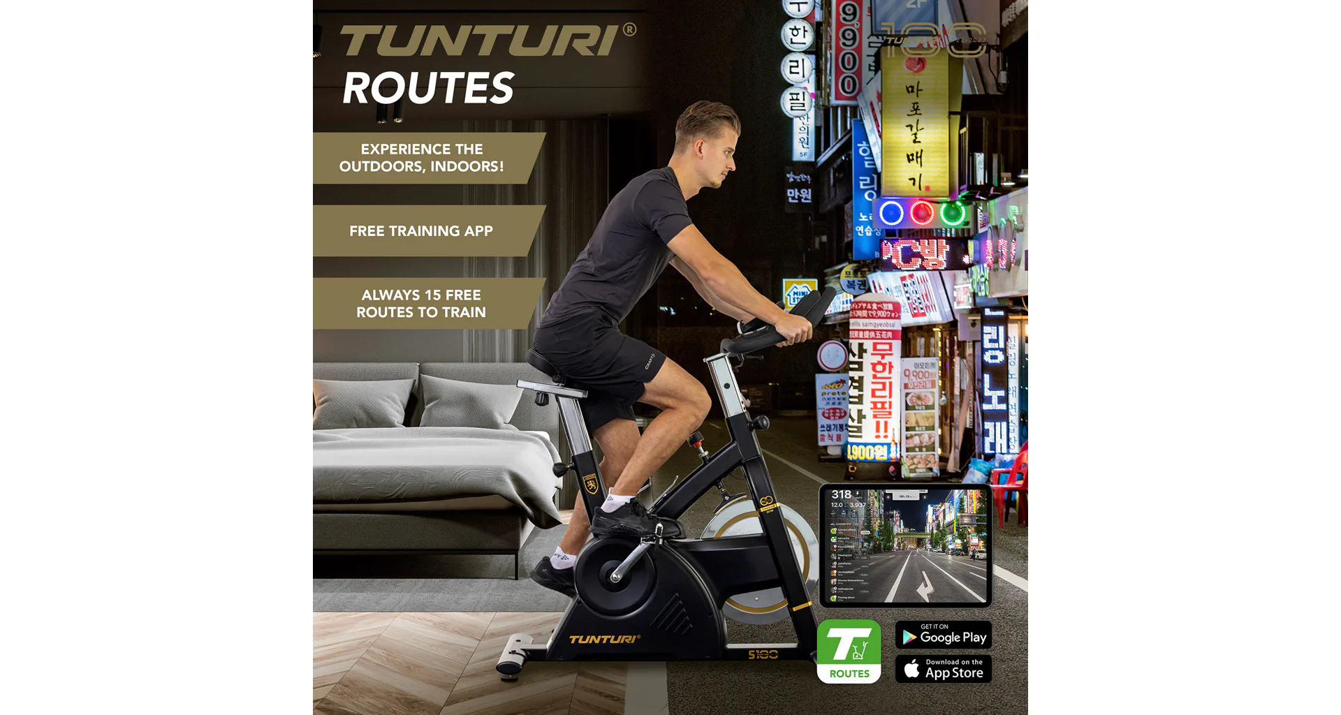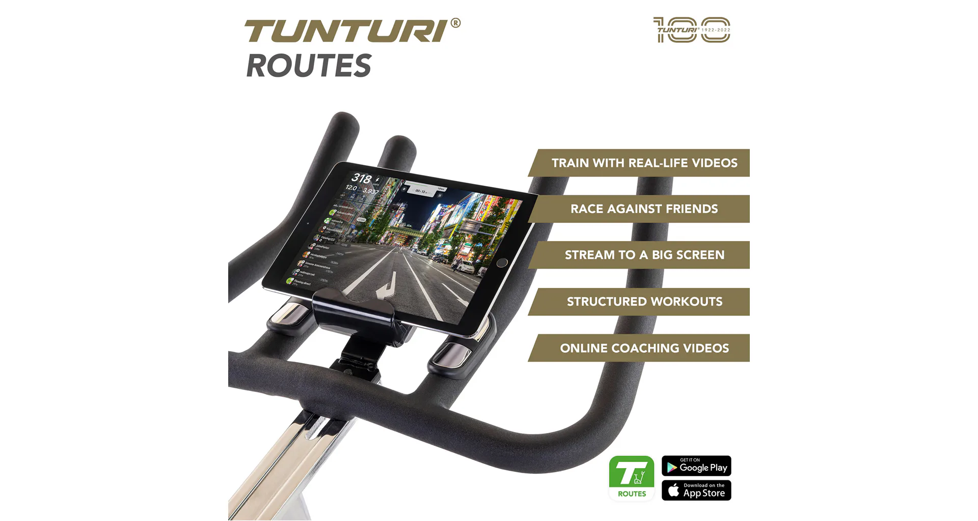 Vydejte se na výlet do přírody s bezplatnou aplikací Tunturi RoutesStoupáte na Alpe d'Huez na kole? Svištíte na lyžích po sněhu v Alpách? S aplikací Tunturi Routes zůstává trénink zábavou a výzvou. Bezplatná verze aplikace poskytuje vždy přístup k patnácti videotrasám. S prémiovou verzí Tunturi Routes si můžete vybrat ze stovek tisíc kilometrů tras po celém světě a stovek tréninkových videí. Váš trénink bude skutečným vizuálním zážitkem!