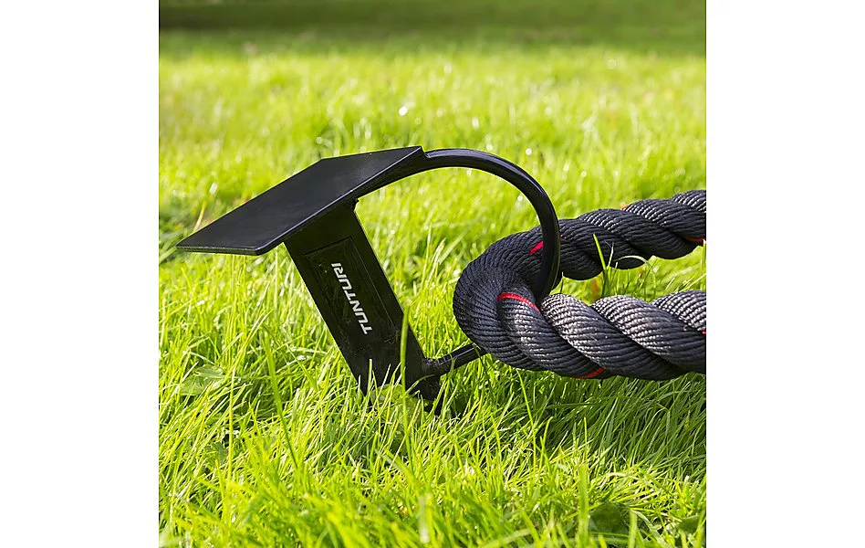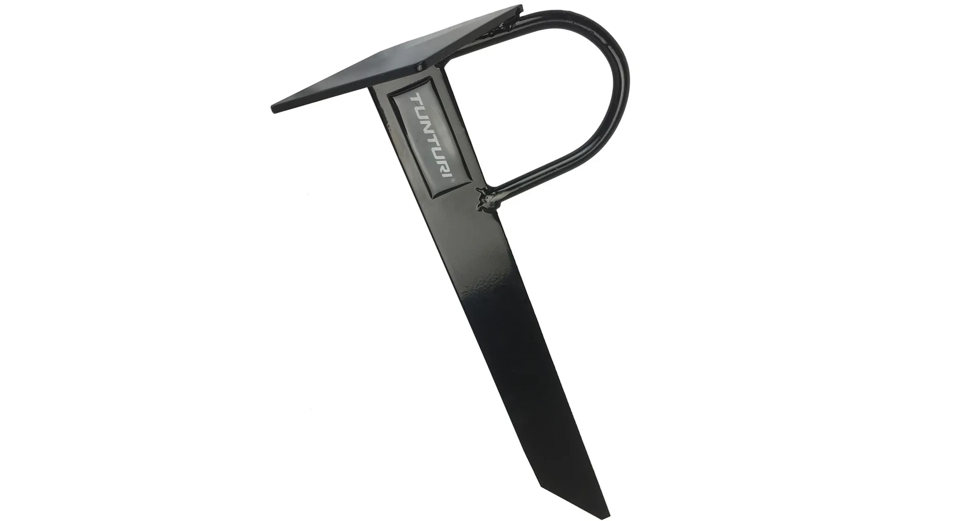 Masivní hák do země od značky TUNTURI pro posilovací lano. Jednoduché ukotvení pomocí zúženého části držáku do země.