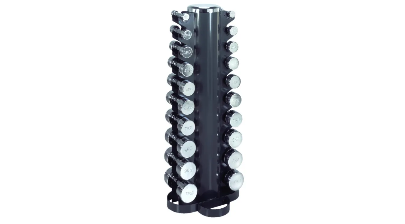 Tunturi Dumbbell Tower je stojan pro ukládání jednoručních činek určený pro domácí i komerční posilovny. Stojan je vyroben z kvalitního kovu s černým lakováním. Možnost uložení 10 párů jednoručních činek.