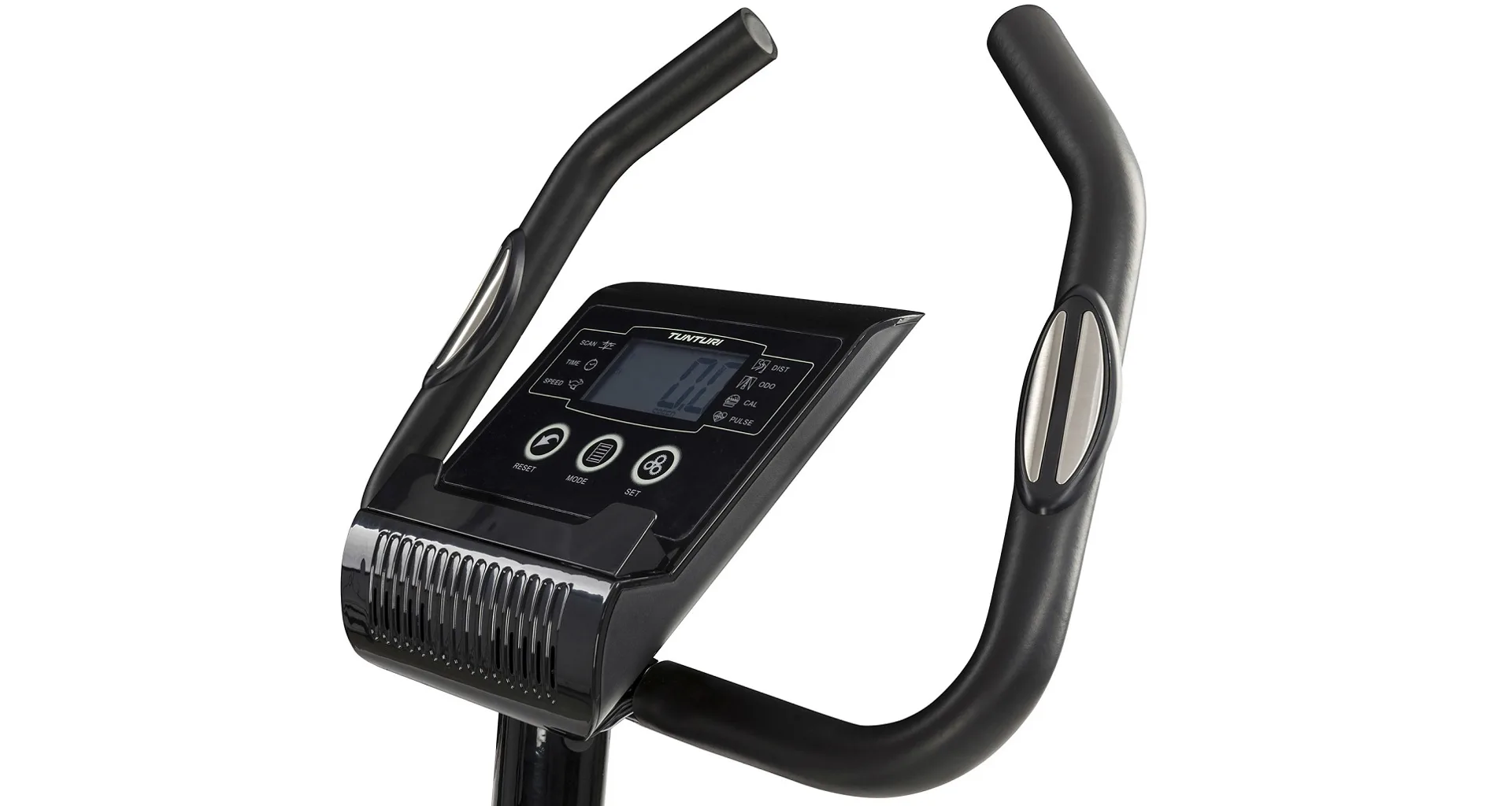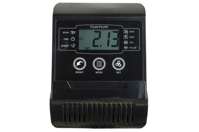 Rotoped Tunturi FitCycle 30 disponuje přehledným počítačem s LCD displejem, držákem na tablet/smartphone, transportními kolečky a vyrovnávači nerovnosti.