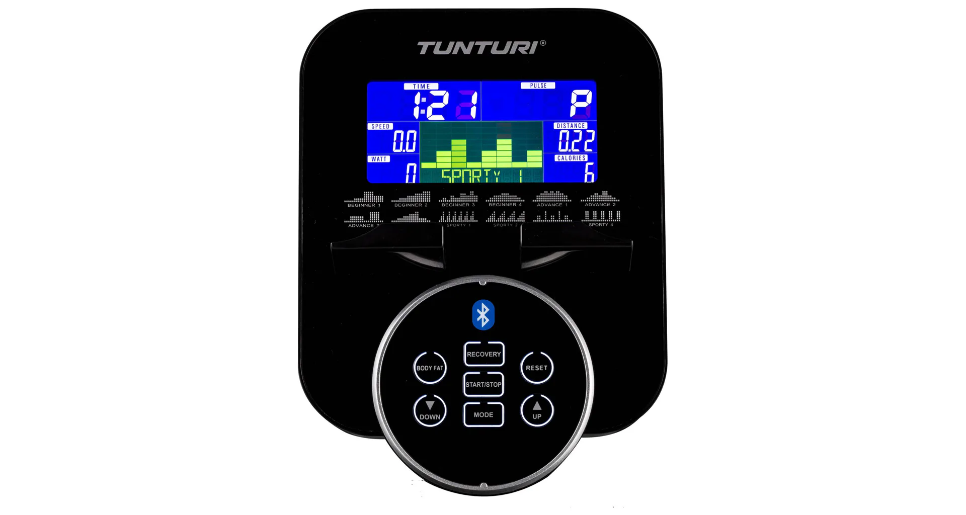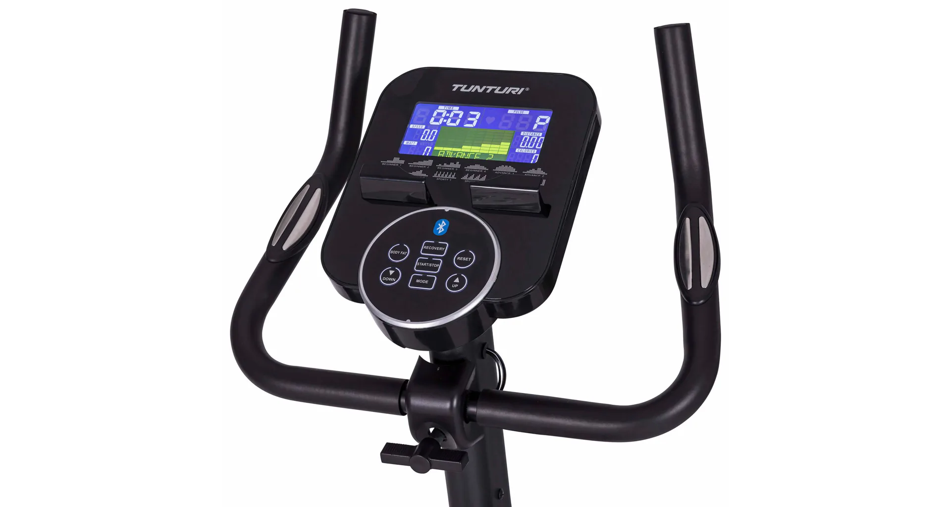 Rotoped Tunturi FitCycle 90i disponuje přehledným počítačem s LCD displejem, držákem na tablet/smartphone, držákem na lahev, transportními kolečky a vyrovnávači nerovnosti.