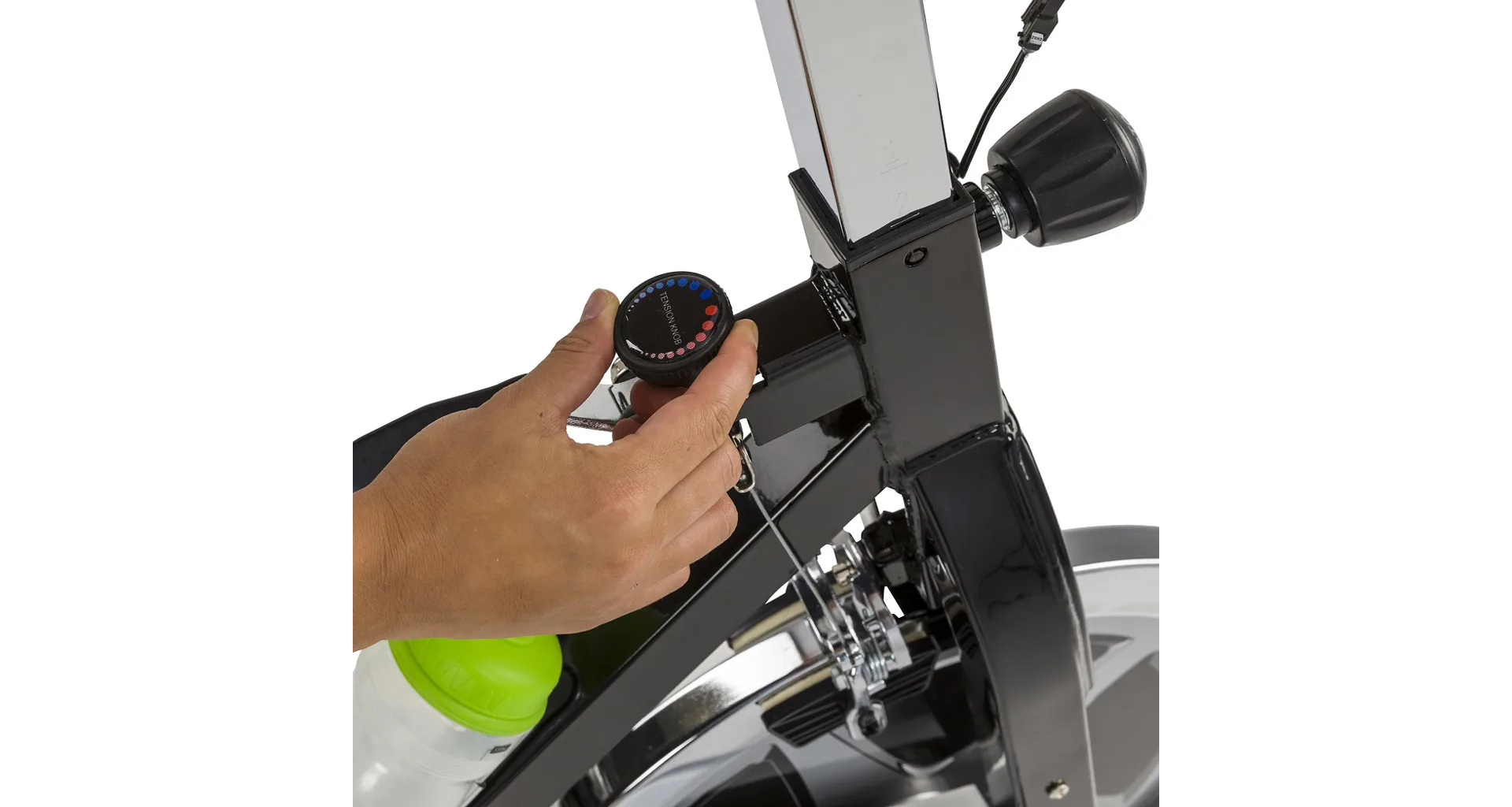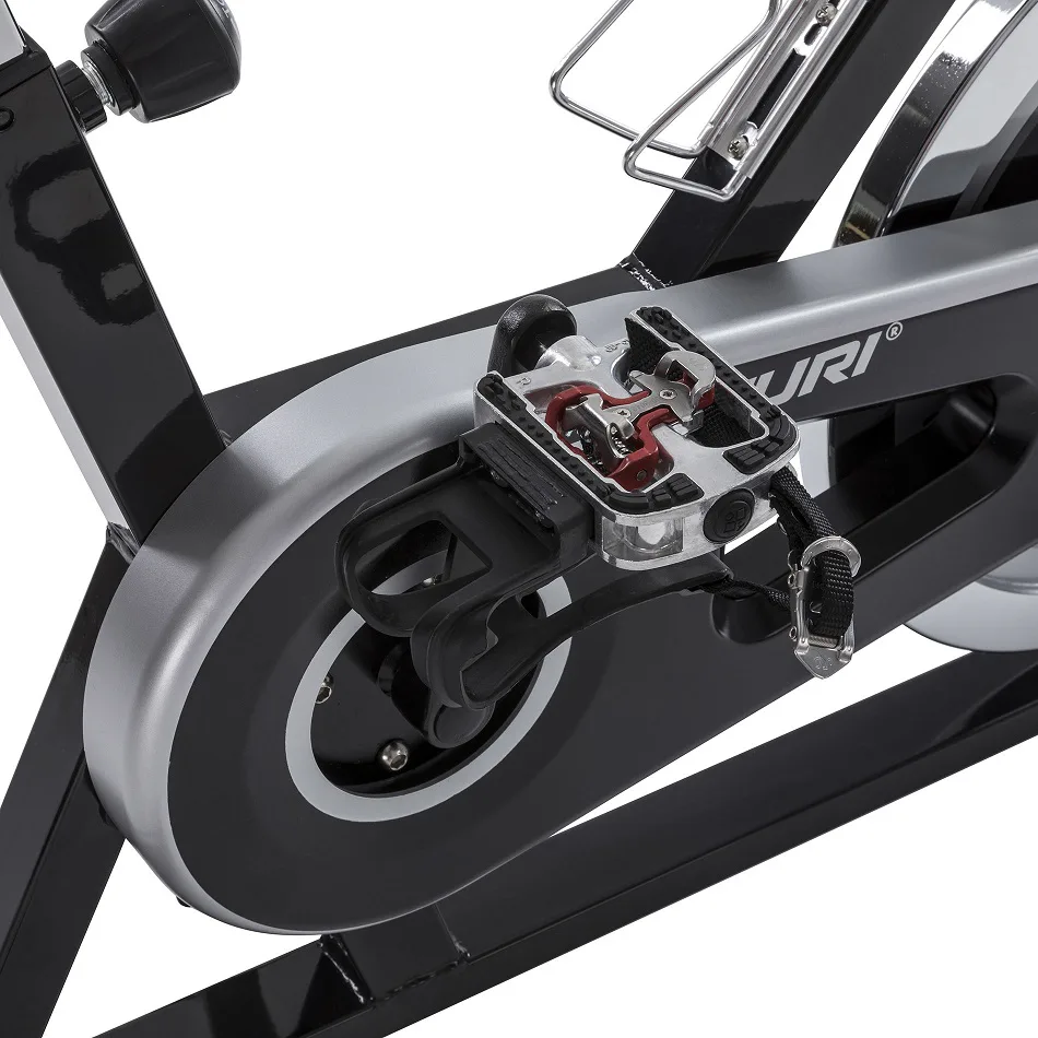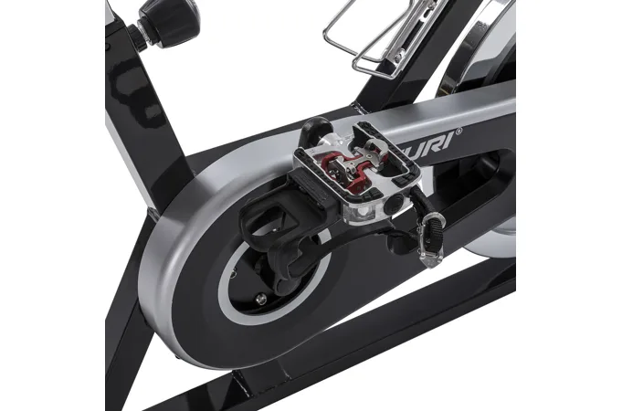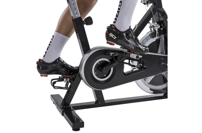 Dlouhou životnost cyklotrenažéru zajišťuje masivní rám s nosností do 135 kg a tichý setrvačník o hmotnosti 22 kg.