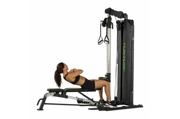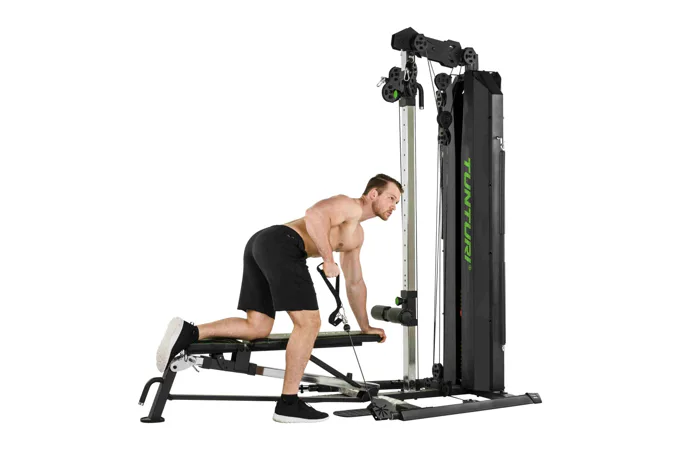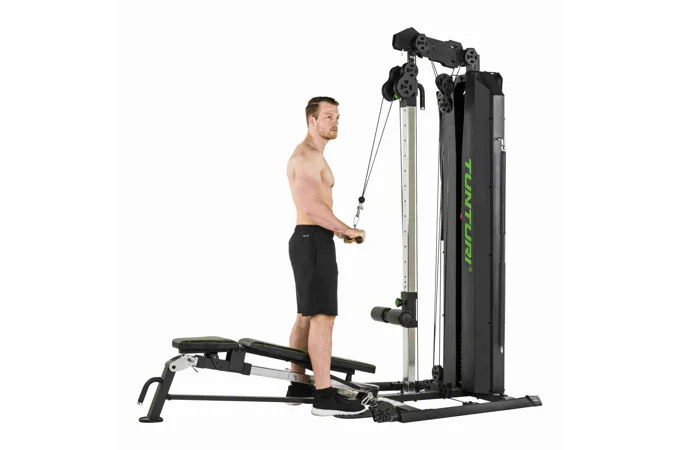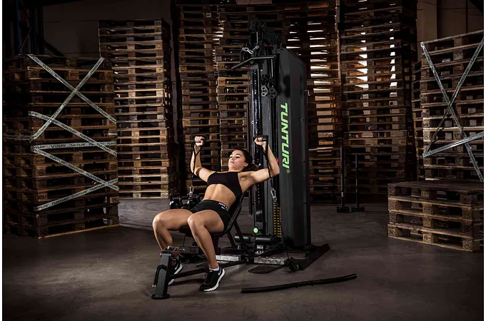 Universální posilovací věž TUNTURI HG80 Home Gym je ideálním strojem do domácího prostředí, díky kterému kvalitně procvičíte horní i dolní svalové partie.