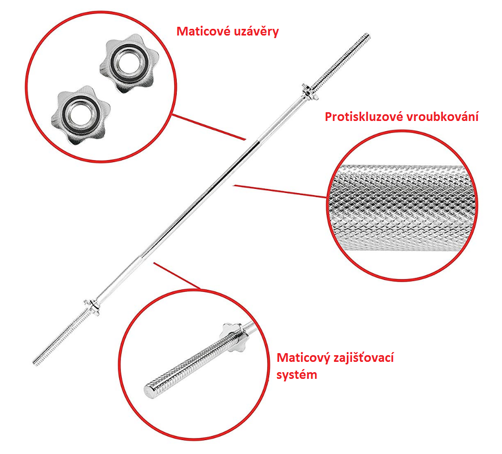 Tunturi osa obouruční 165 cm s průměrem 30 mm na kotouče + zajišťovací uzávěry. Povrchová úprava: chrom.