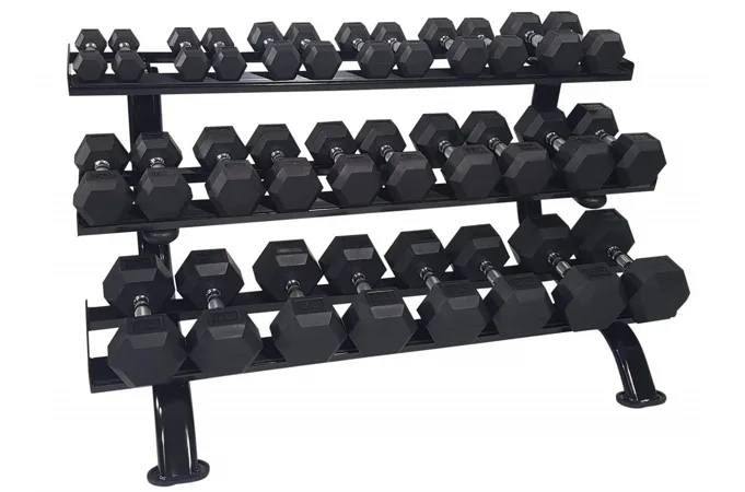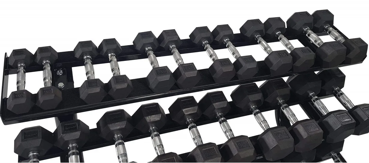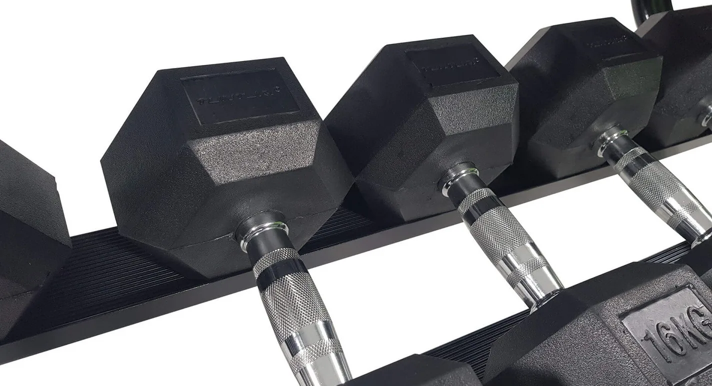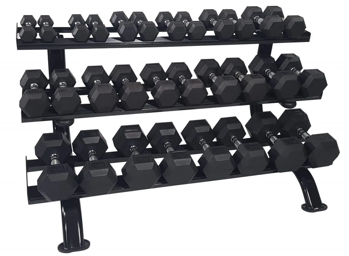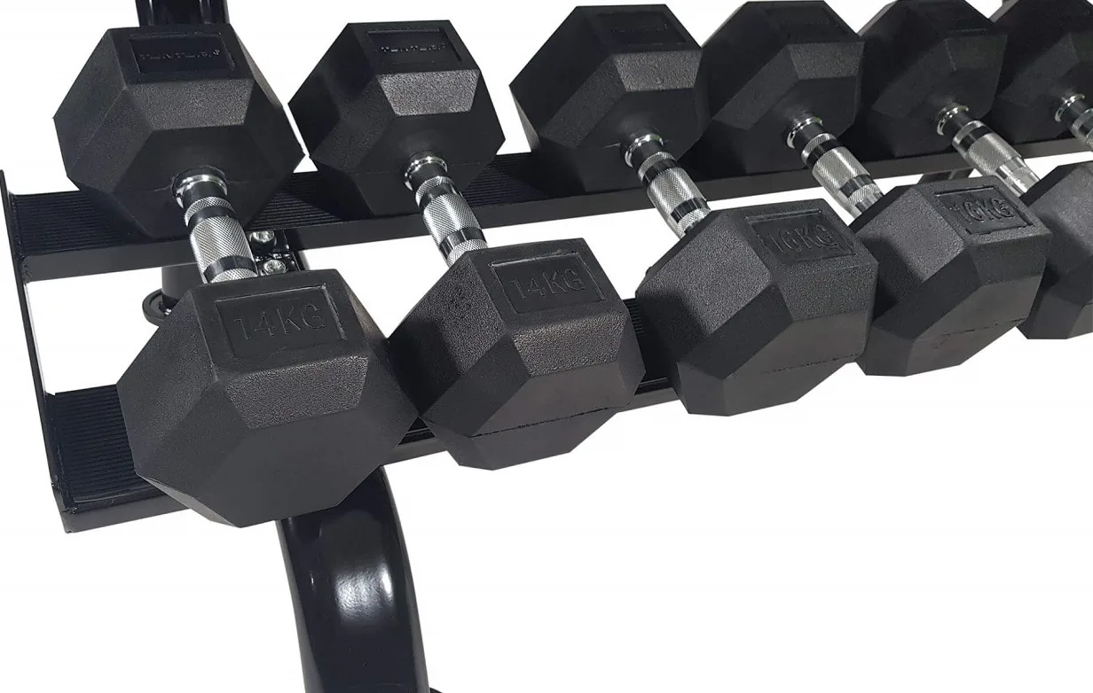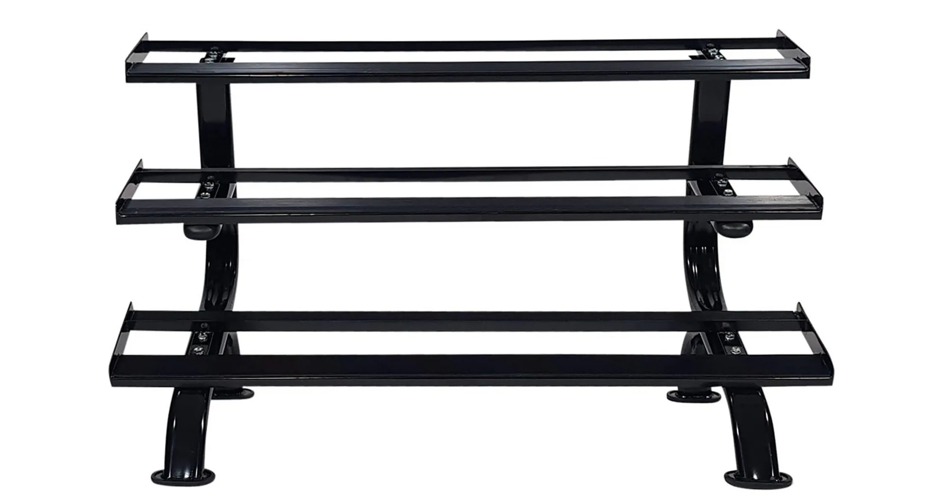 Tunturi odkládací stojan na činky je ideální pro úhledné uložení jednoručních činek, který je vhodný pro použití doma nebo ve fitness centru. Stojan se skládá ze tří řad, kde bezpečně můžete uspořádat činky.