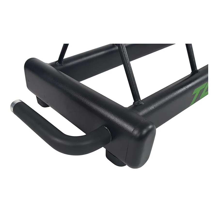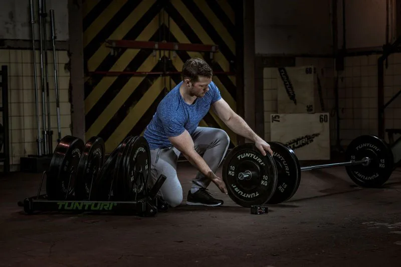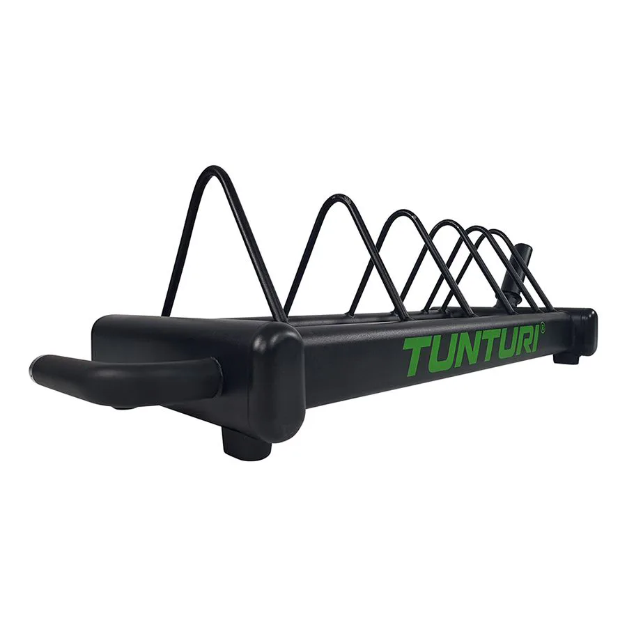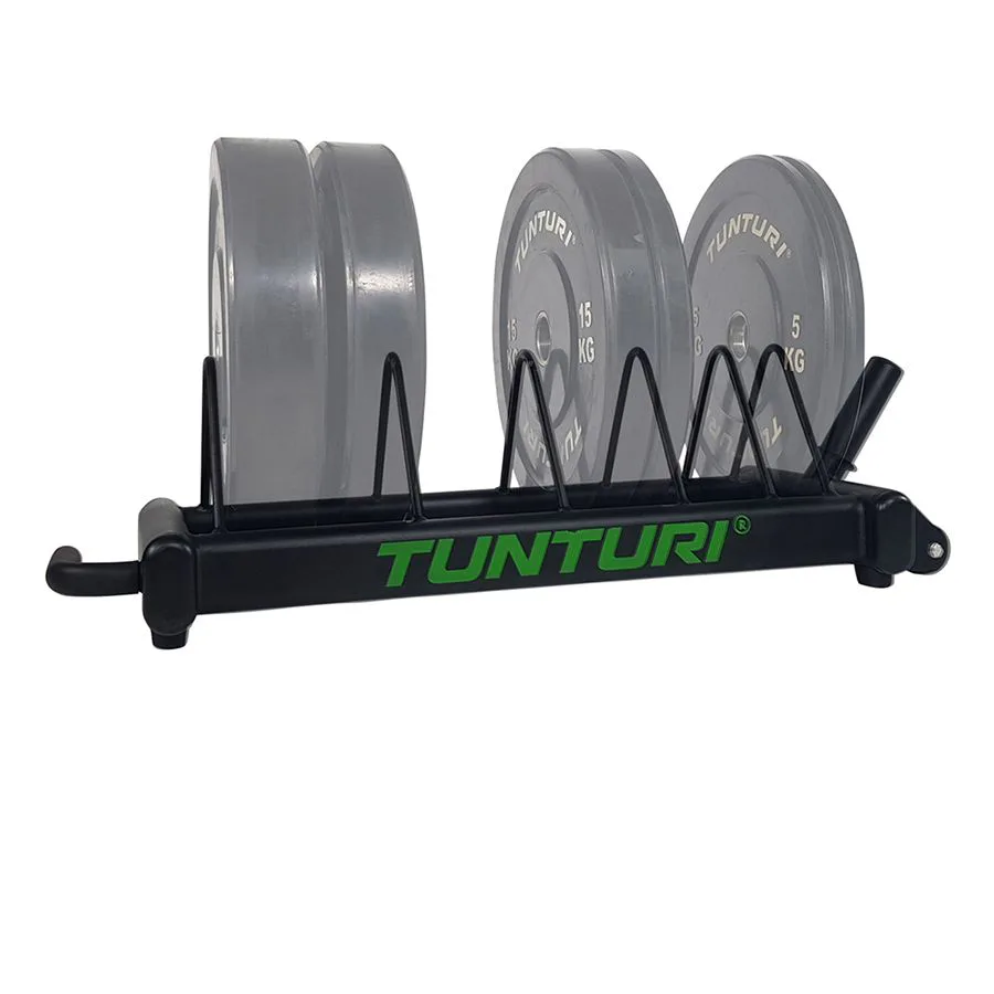 Profesionální stojan BUMPER Plate od značky TUNTURI je praktické řešení pro uložení vašich kotoučů. Stojan umožňuje bezpečné a pohodlné uložení kotoučů jak litinových, ale především gumových BUMPER plate. Stojan disponuje praktickým madlem a pojezdovými kolečky pro snadnou manipulaci v prostoru. Masivní rámová konstrukce z jeklů a kvalitní povrchová úprava vypalovaným lakem zaručují dlouhou životnost stojanu. Díky těmto přednost můžete stojan využít jak pro domácí, tak i komerční účely.