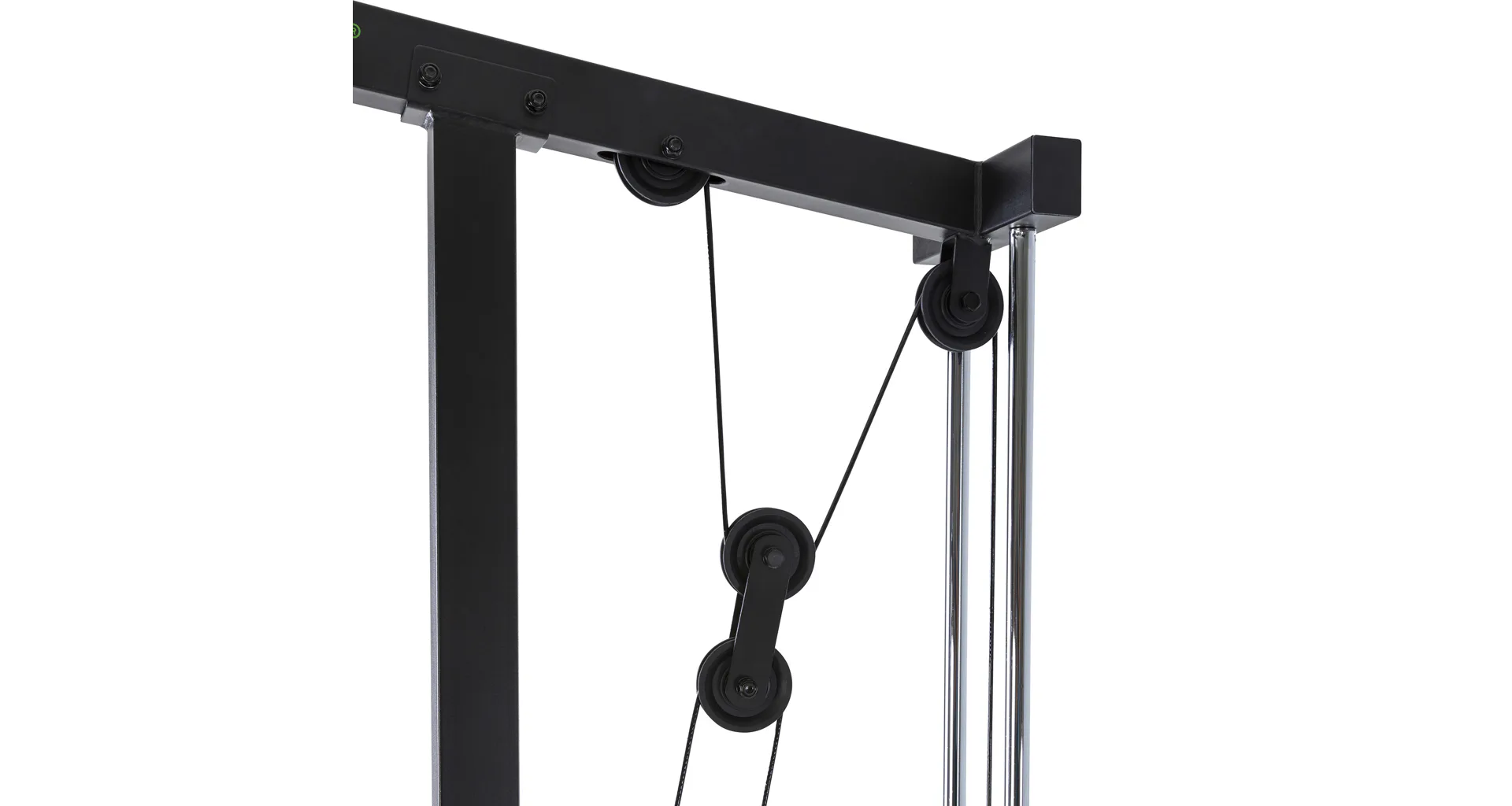 Kladky jsou opatřeny kuličkovými ložisky, které zajišťují hladký a tichý chod stroje. Rámová konstrukce je vyrobená z kvalitní oceli a celková hmotnost posilovacího stroje je 50 kg. Rozměry sestaveného stroje jsou (d x š x v) 145 x 108 x 208 cm.