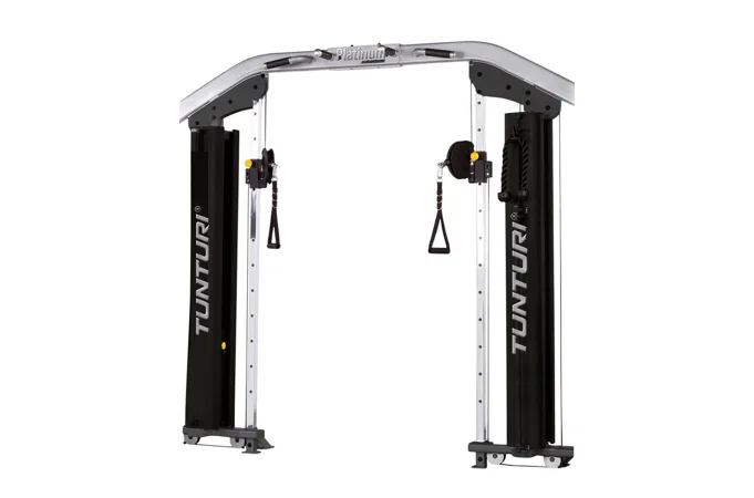 TUNTURI PLATINUM Cable Cross - protisměrné kladky je konstrukce protisměrných kladek a současně je jakýmsi základním prvkem sestavy multifunkčního zařízení spolu s ostatními (Upper body unit, Lower body unit,....). Význam a využívání protisměrných kladek lze jen těžce nahradit. Tahové cviky nabízejí maximální variabilitu, spolu s precizním konstrukčním provedením je tak multifunkční zařízení schopné plnit potřeby silového tréninku, s tím, že je myšleno na téměř všechny svalové partie. Uplatnění nalezne Tunturi Platinum 4in1 především v komerčních provozech.