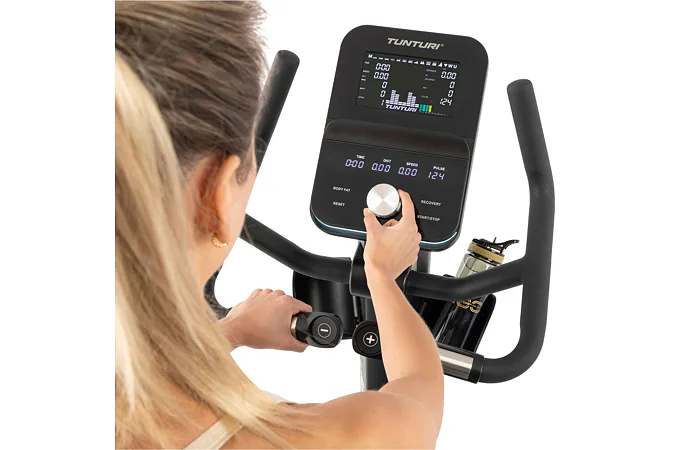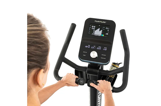 Rotoped TUNTURI PLATINUM UB20 se vyznačuje perfektní ergonomií a maximálním pohodlím. To především díky horizontálně a výškově nastavitelnému sedlu, ergonomickým madlům s tlačítky pro ovládání zátěže a komfortním pedálům s nastavitelnými klipsnami.