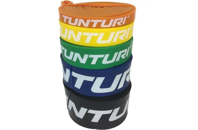 TUNTURI Power Band je posilovací guma pro posilování a powerlifting, vhodná pro silový či funkční trénink, crossfit, bojové sporty. Praktická pomůcka pro odlehčení nebo přidání odporu. Vhodný doplněk domácí posilovny, fitness studia nebo komerční posilovny. Podobně jako cvičení s řetězy nabízí tento prvek různé varianty prograsivního cvičení se zátěží. Ta je zde dána odporem materiálu (jeho tloušťkou). Odpor roste dynamicky v průběhu provádění cviku a tím umoňuje efektivněji zapojit vaše svalstvo. Velmi flexibilní a odolný materiál proti poškození a deformaci.