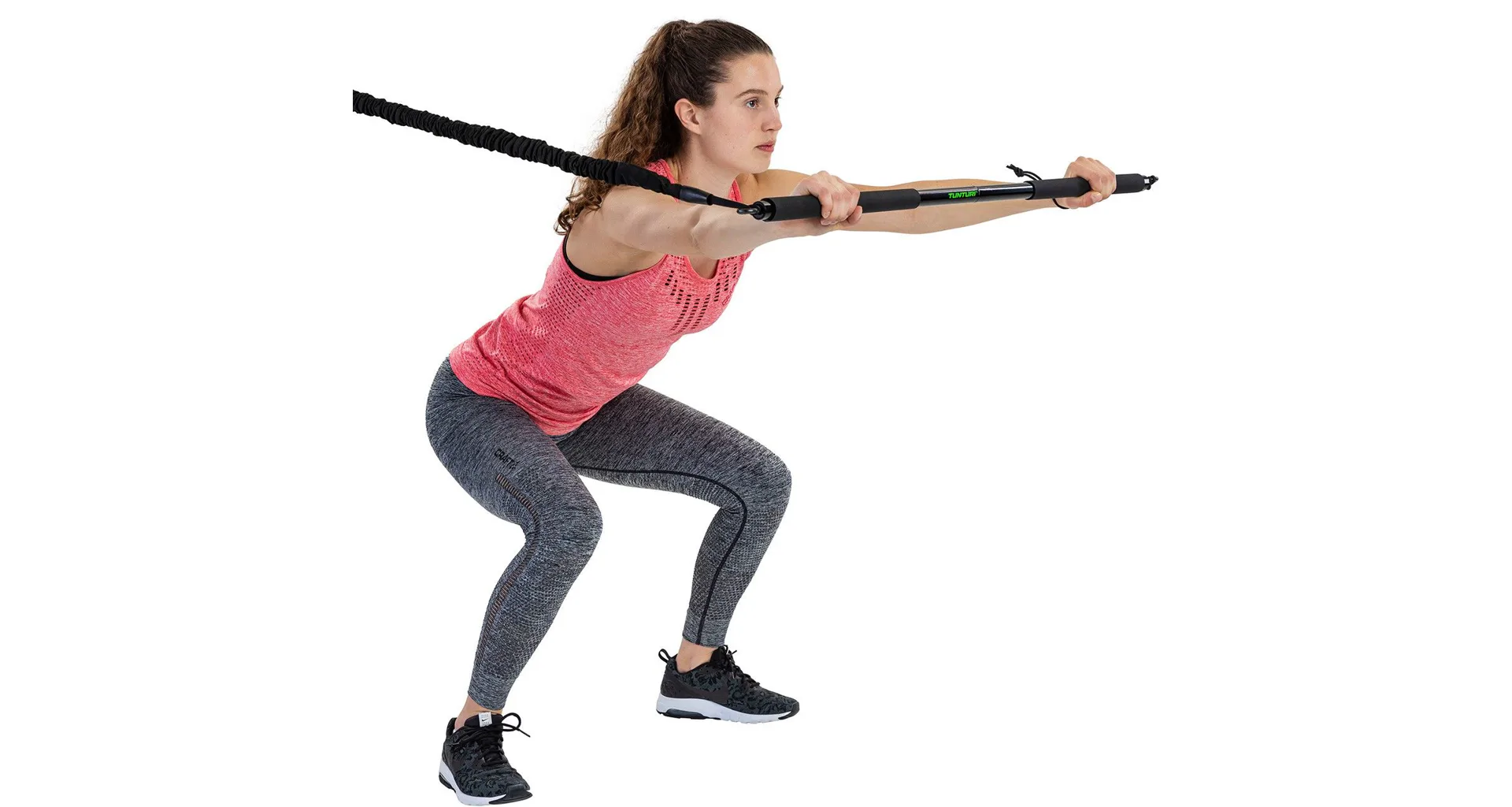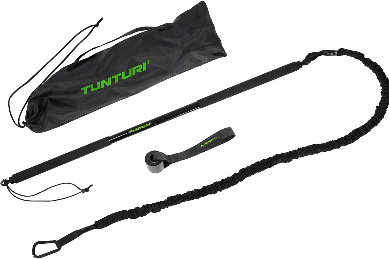 S Tunturi Resistance Trainer můžete pracovat na síle, vytrvalosti a flexibilitě svého těla pomocí odporového kabelu. Sada se skládá z odporového lanka, tyče, dveřní kotvy a bezpečnostního popruhu. Pomocí dveřní kotvy snadno a rychle přeměníte každou místnost na cvičební prostor.