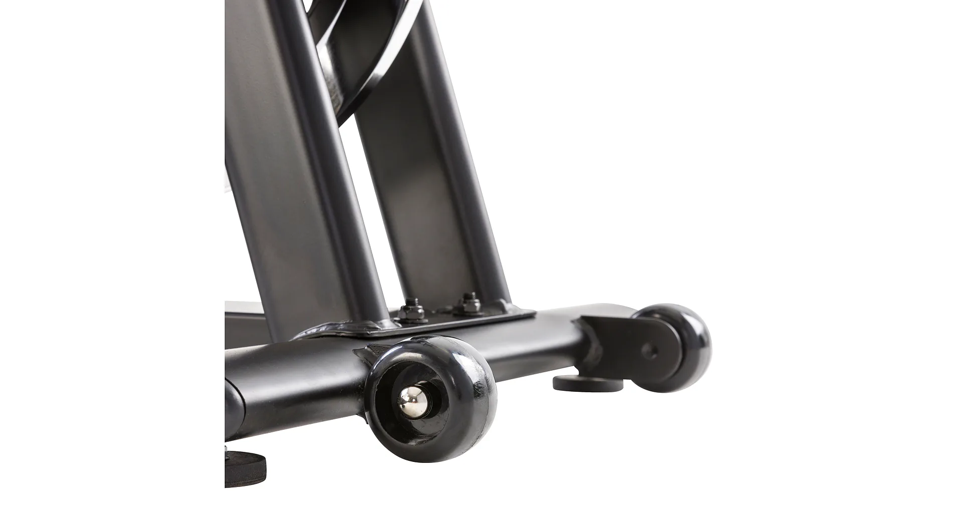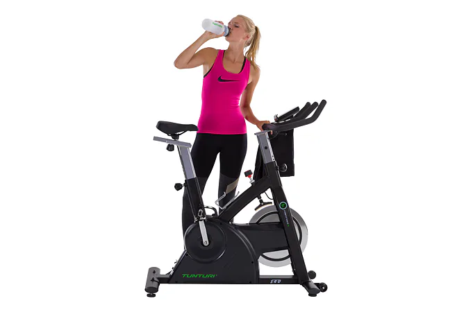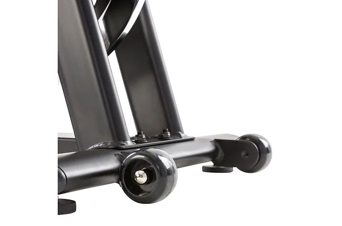 Součástí cyklotrenažéru je držák na lahev s pitím, transportní kolečka pro manipulaci v prostoru a vyrovnávače nerovnosti pro maximální stabilitu stroje při tréninku.