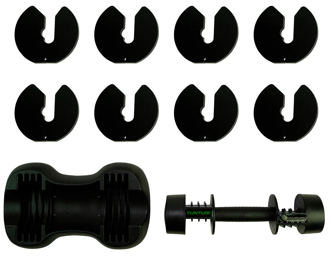 Tunturi Selector je jednoruční činka navržena pro cvičení s různými vahami. Můžete trénovat s několika snadno nastavitelnými váhami pomocí jedné činky.