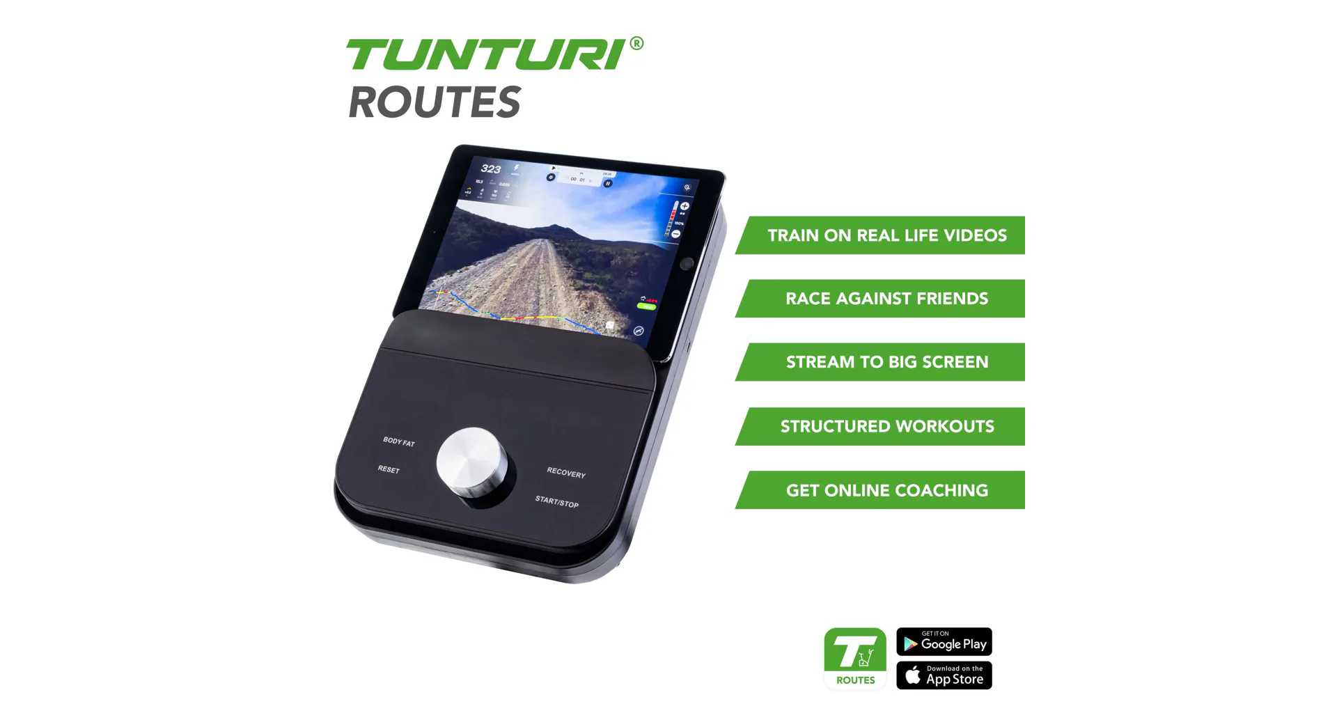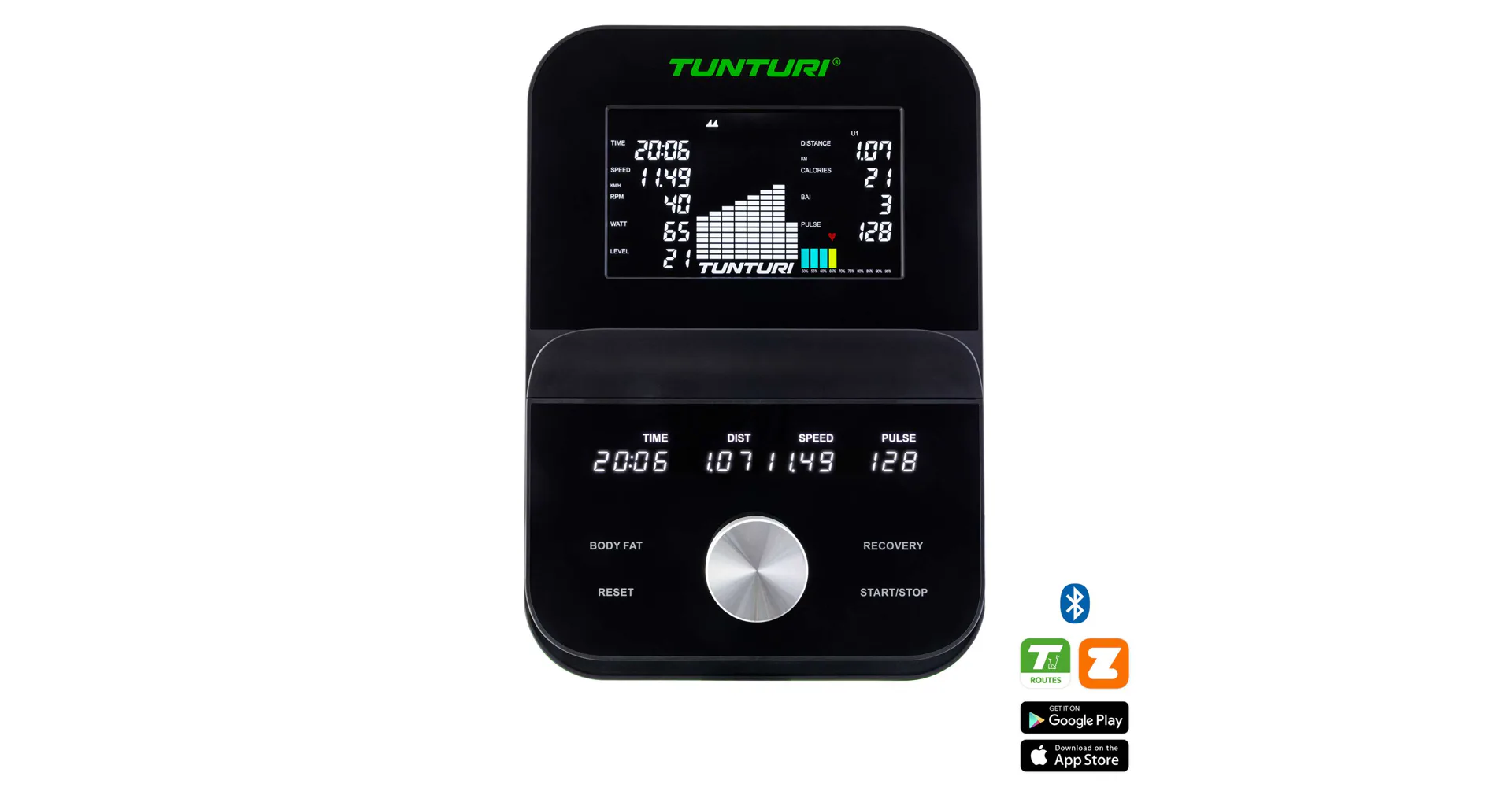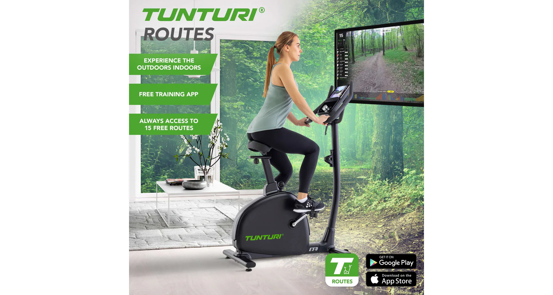 Chcete si rozšířit programovou nabídku a udělat si trénink ještě zábavnější? Pak se můžete přes Bluetooth připojit k tréninkovým aplikacím Tunturi Routes, iConsole+ Training, Zwift nebo Kinomap. Díky aplikacím máte k dispozici systém Google Maps, což vám umožní vytvářet vlastní trasy a překonávat nové výzvy.