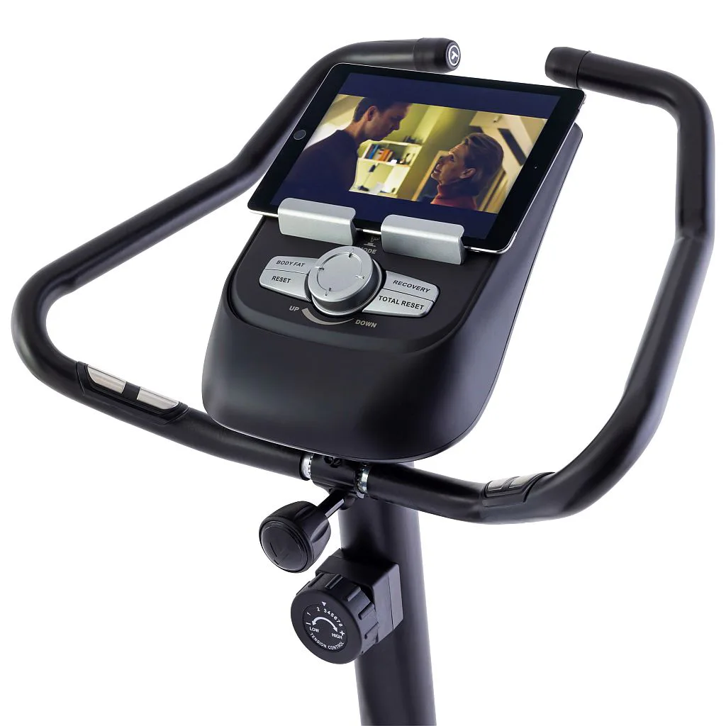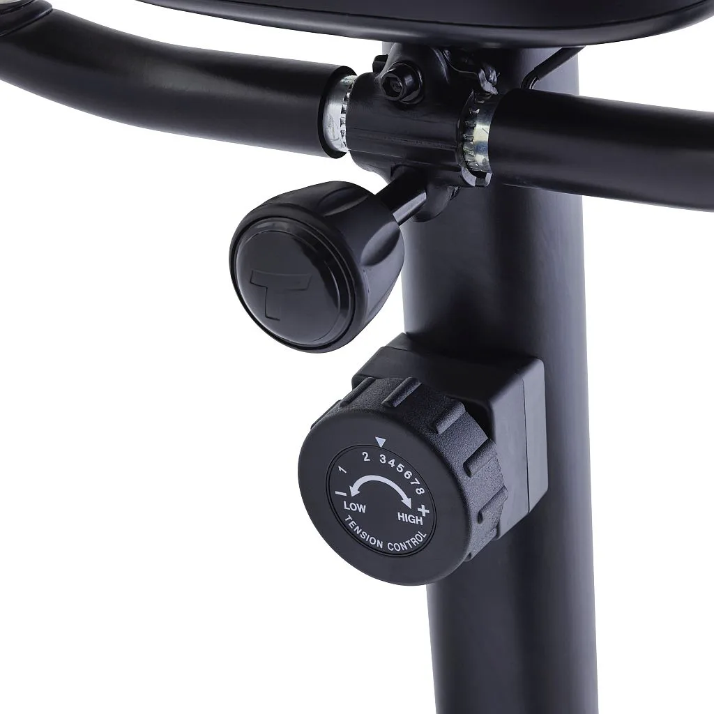 Snadné nastavení mezi 8 úrovněmi odporu. Díky bezúdržbové magnetické brzdě můžete manuálně upravit odpor do 8 úrovní. Díky tomu můžete neustále kontrolovat intenzitu tréninku, a to i v jeho průběhu. Například nemusíte sesedat z trenažéru nebo přerušovat trénink, abyste změnili úroveň odporu. Odpor snadno upravíte pomocí otočného regulátoru na sloupku řídítek.