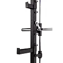 Součástí stroje jsou i odkládací trny pro olympijskou činku (samostatná činka a kotouče nejsou součástí balení, je možné je dokoupit)