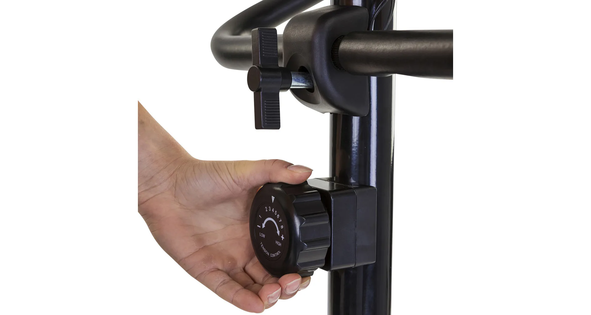 Rotoped ma magnetický brzdný systém, který nabízí 8 úrovní odporu, které lze nastavit manuálně pomocí otočného regulátoru. Plynulost trenažéru i při vysokém zatížení zajišťuje kalibrovaný těžký setrvačník o hmotnosti 9 kg.