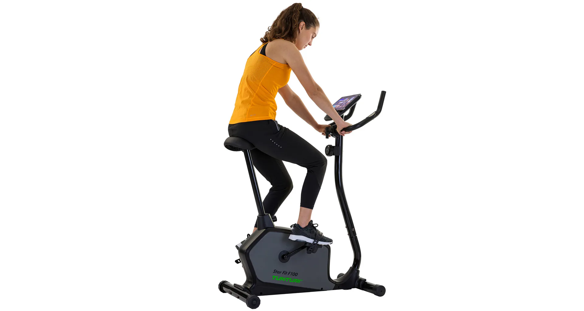 Rotoped Tunturi StarFit F100 je dále vybaven počítačem, držákem na tablet, transportními kolečky, vyrovnávači nerovnosti a držákem na lahev.