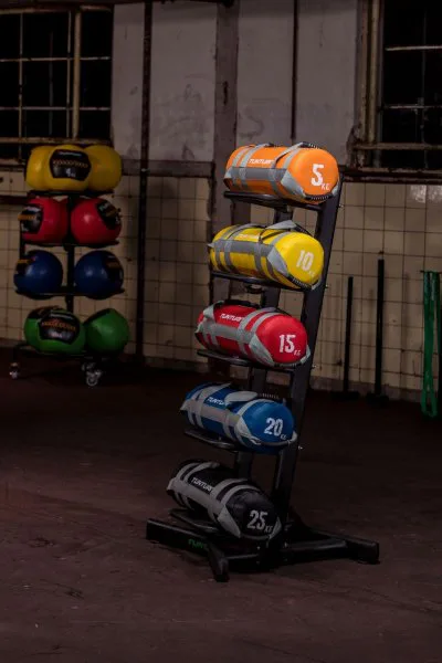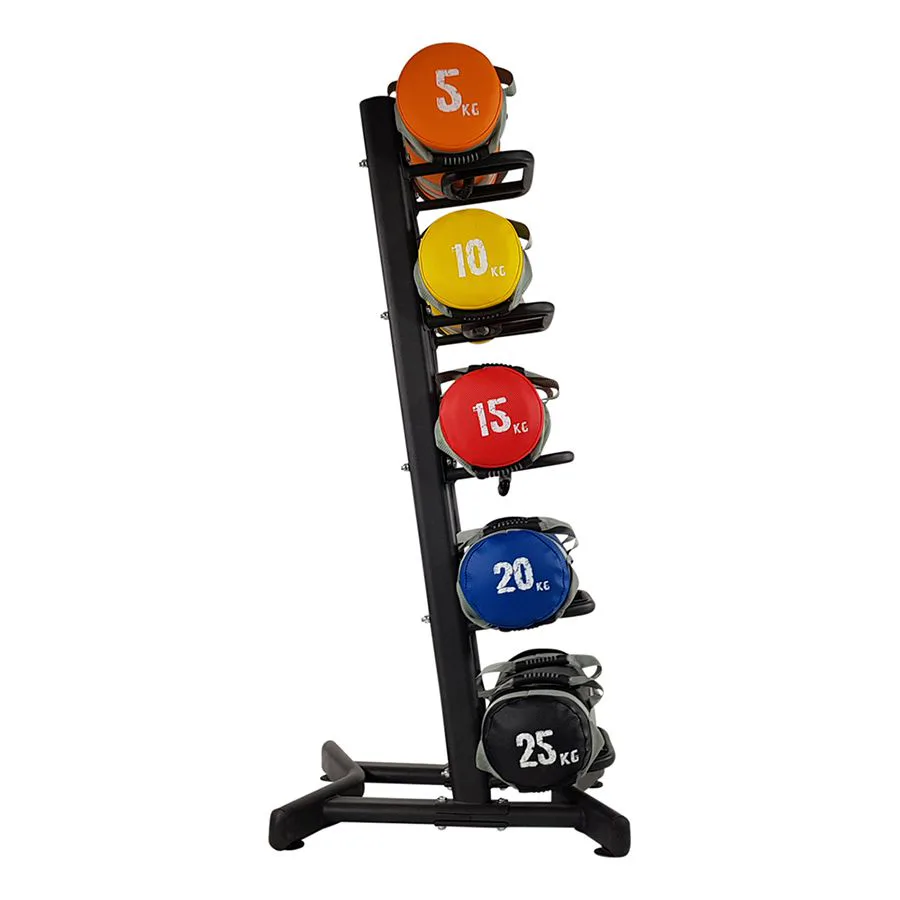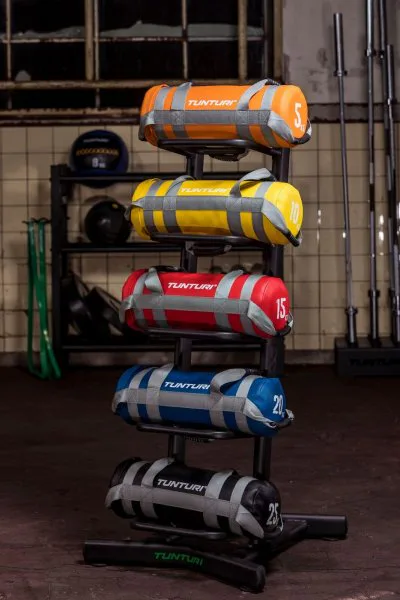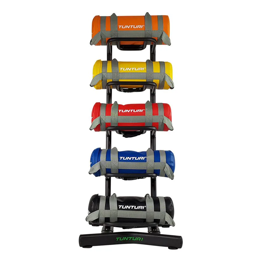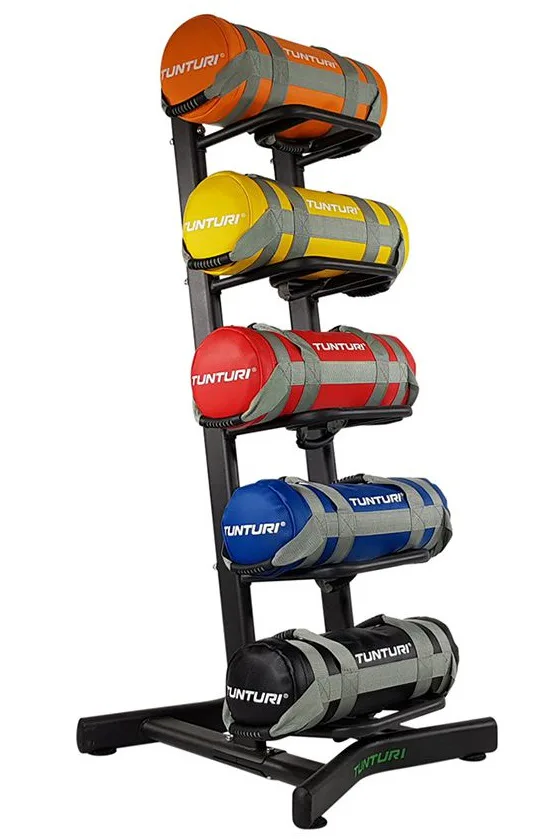 Stojan na posilovací vaky Strength Bag TUNTURI nabízí úložný prostor pro 5 zátěžových vaků. Hlavní předností stojanu je bezpečné uložení, úspora místa a přehledné uspořádání zátěžových vaků. Pevná, stabilní kovová konstrukce a výborné zpracování jsou již tradiční devizou značky TUNTURI.