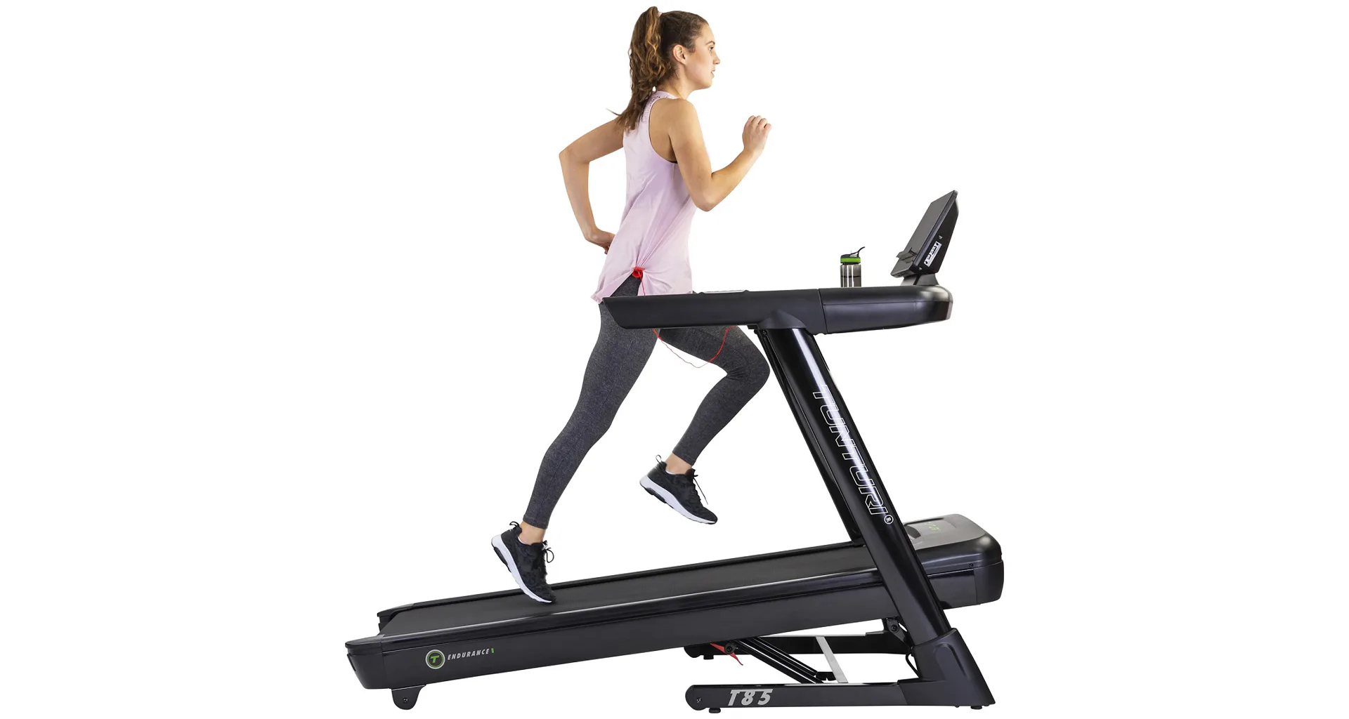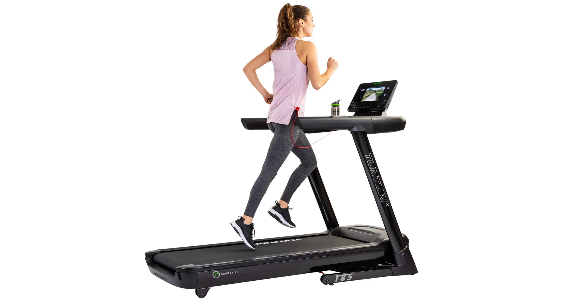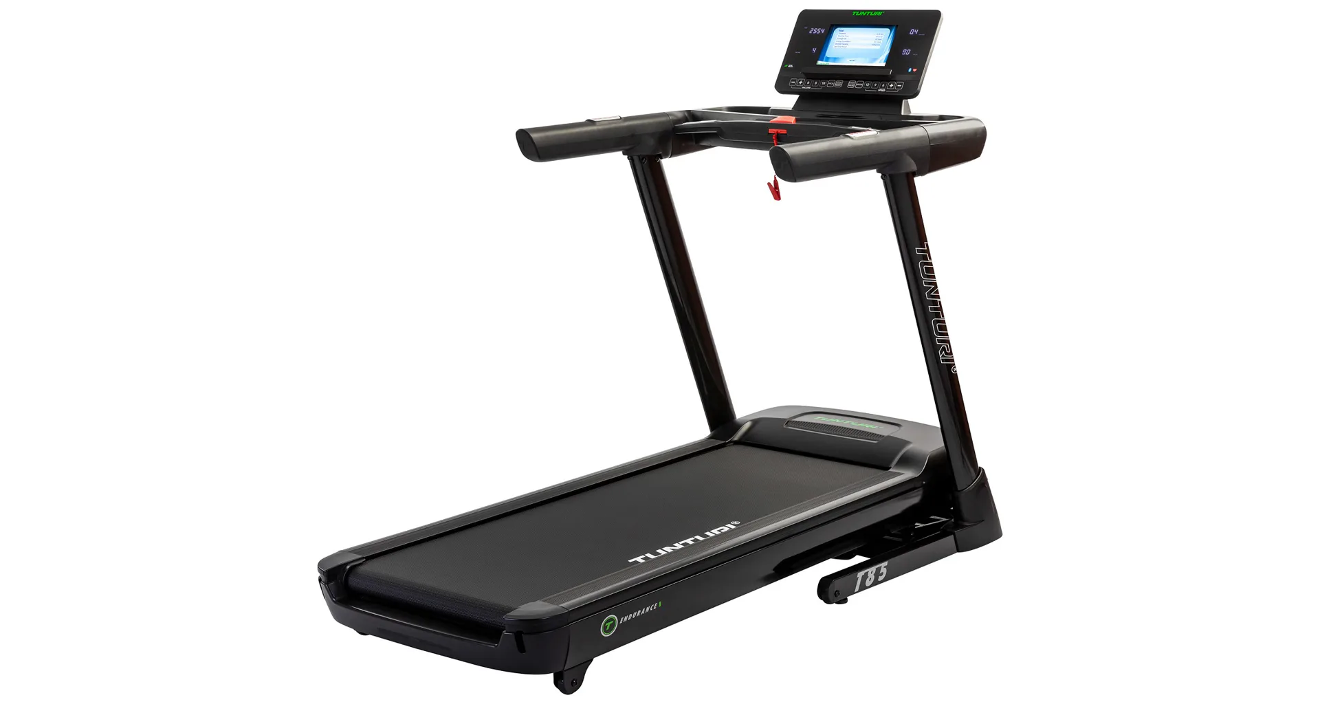 Trenažér Tunturi T85 Endurance je vybaven tichým a výkonným DC motorem o maximální síle 4,04 kW (5,5 HP) a umožňuje elektronické nastavení rychlostí v rozmezí 0,5 až 16 km/h.