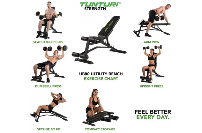 Tunturi UB80 Utility Bench je multifunkční lavice, která je díky své skladnosti vhodná do domácího prostředí pro začínající, ale i náročné sportovce.