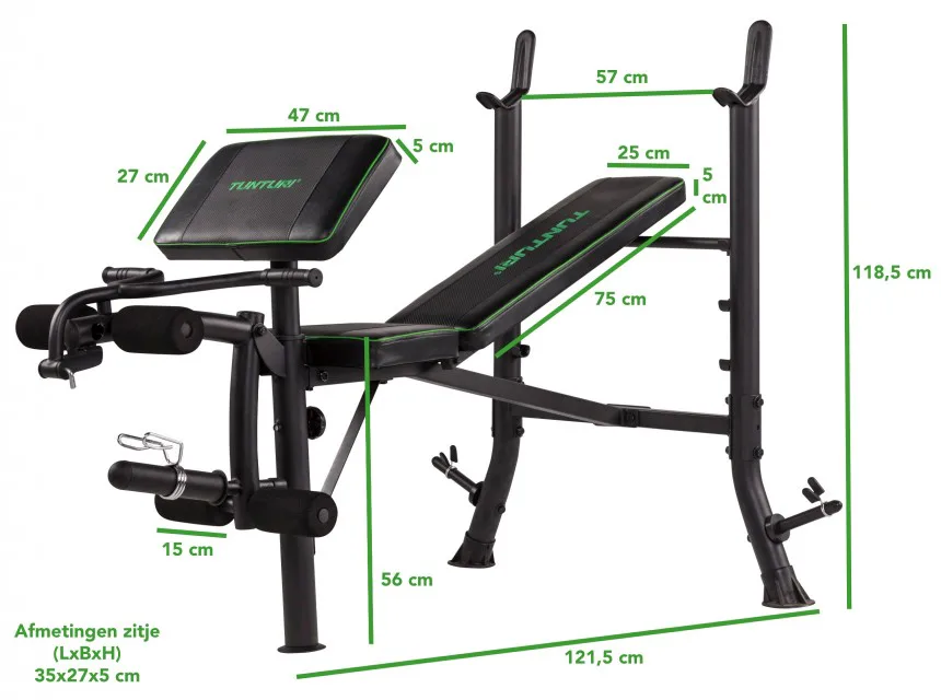 Tunturi WB40 Compact Width Weight Bench je univerzální posilovací lavice pro silový trénink v domácím prostředí. Součástí lavice je stojan na dlouhou činku, bicepsová opěrka a adaptéry pro předkopávání a zakopávání.