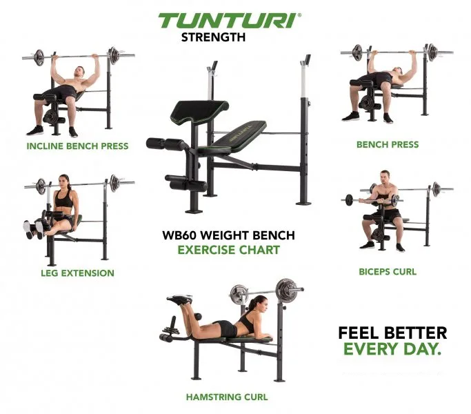 Tunturi WB60 Olympic Width Weight Bench vám umožní efektivně protrénovat celé tělo u vás doma. Lavice je spojená se stojanem na dlouhou obouruční činku, s bicepsovou opěrkou a adaptéry na předkopávání nebo zakopávání.