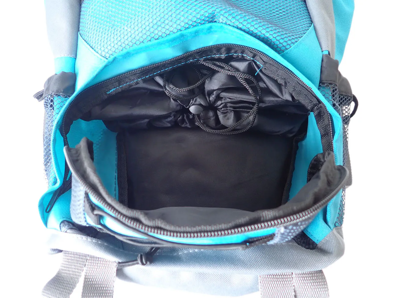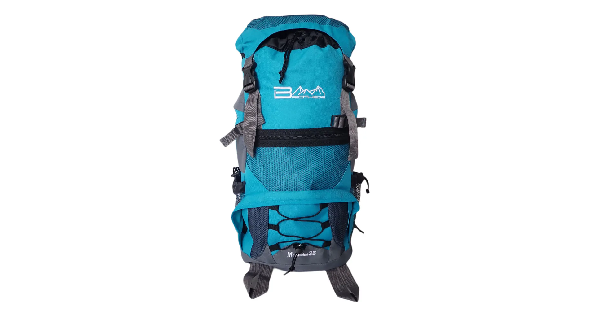Turistický batoh ACRA BA35 se zádovým systémem a s ventilací, bederní pás s maximálním obvodem 106cm a hrudní pás, 4 upínací pásky na různé předměty (trek. hole, cepín...).