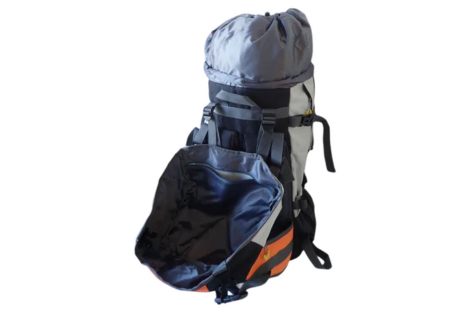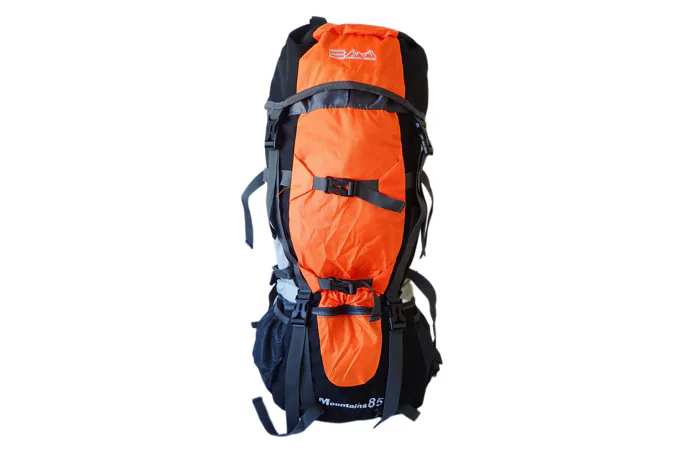Turistický batoh ACRA BA85 pro horskou turistiku se zpevněným zádovým systém, pevnou konstrukcí a perfektní ventilací. Bederní pás s maximálním obvodem 135cm a hrudní pás, velké množství upínacích pásků na různé předměty (trekingové hole, boty, cepín...).