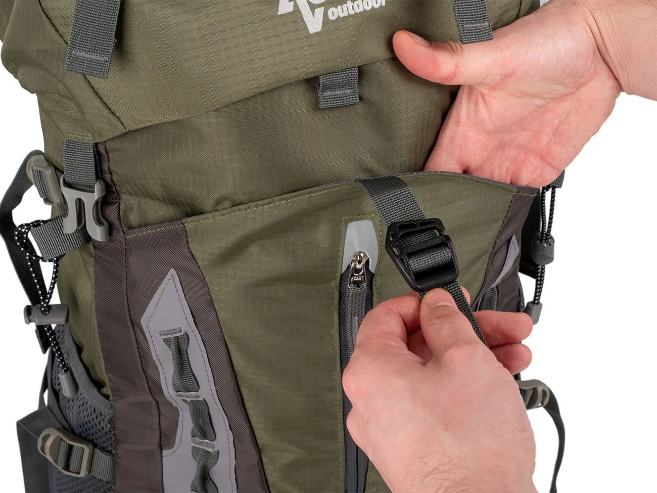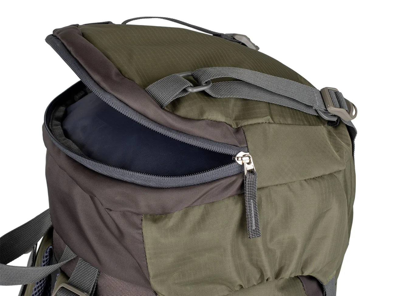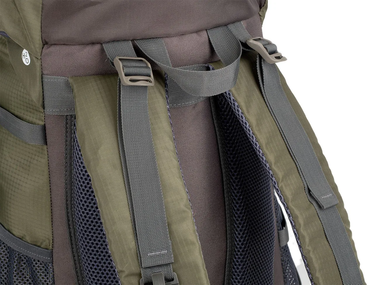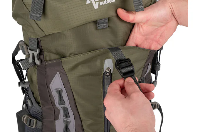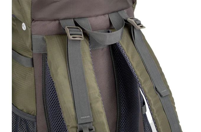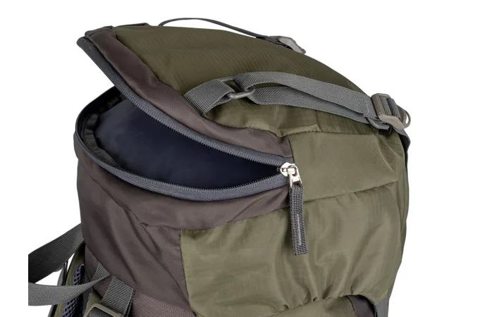 Batoh má 9 různých větších i menších kapes a oddílů - 1 hlavní komoru s vrchním vstupem s oboustrannými zipy, spodní komoru s otevíráním na zip zepředu pro oddělení např. bot od ostatních věcí, 2 velké síťované kapsy se stahovací pružinkou po stranách batohu, vpředu uprostřed je svislá kapsa na zip. Tím je ještě komfortněji rozdělený vnitřní prostor batohu s usnadněním přístupu k uloženým věcem.