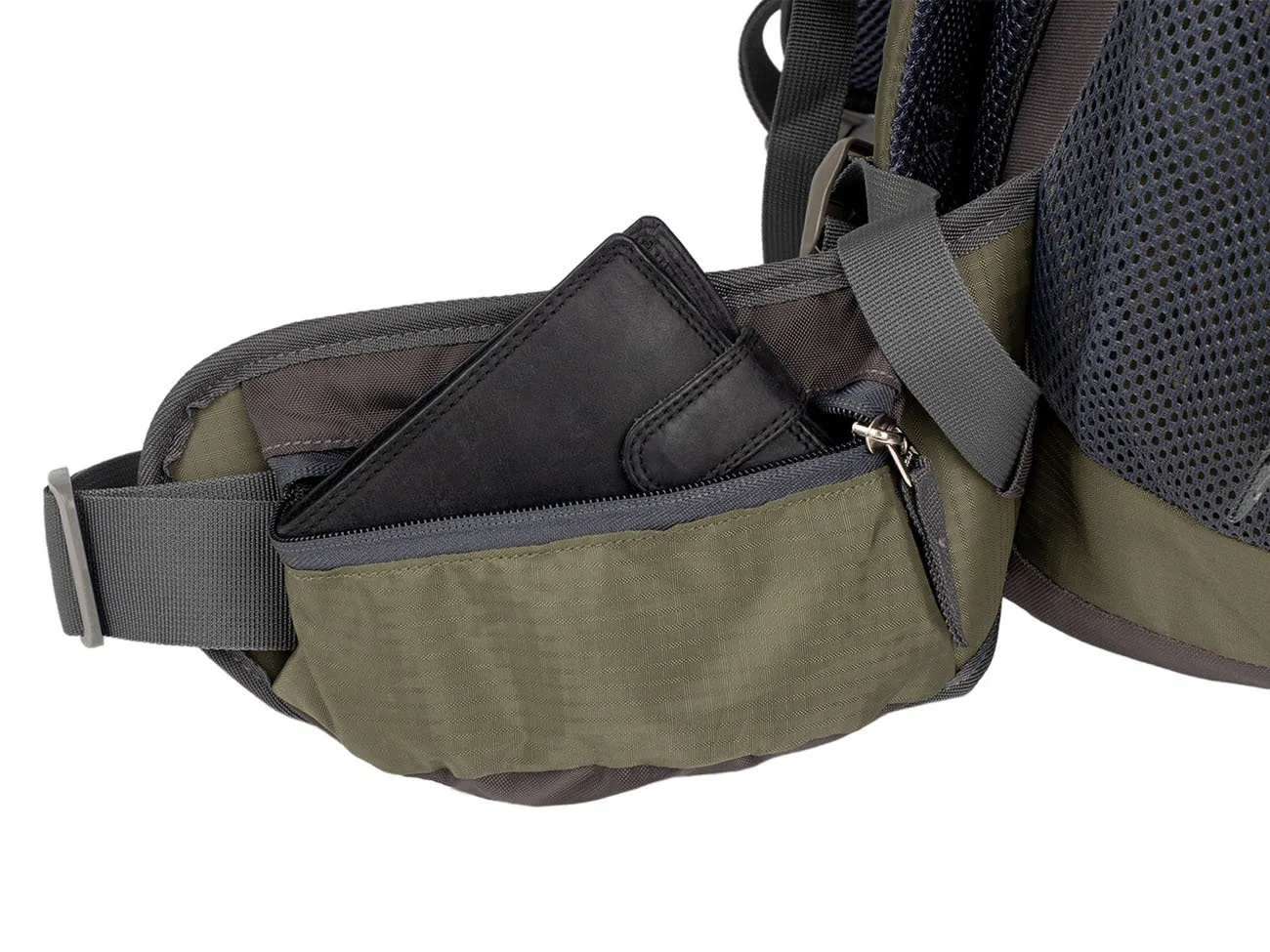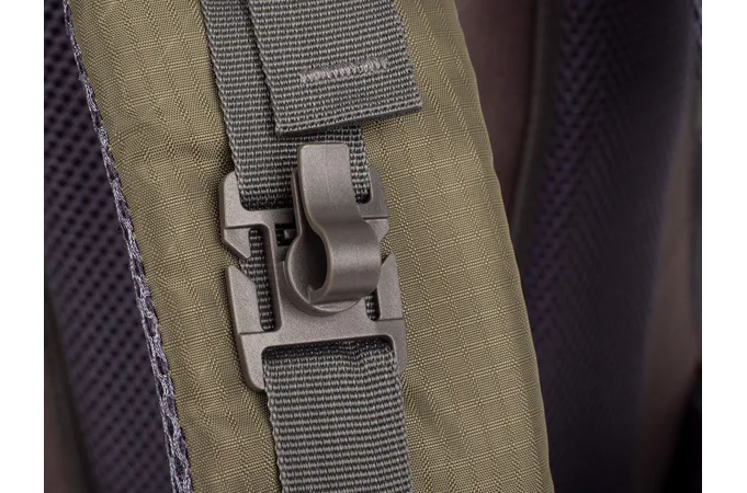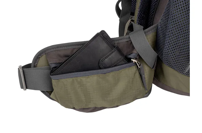 V zavíracím vrchním víku batohu je ještě další kapsa s úložním prostorem na zip. Dvě kapsičky na zip jsou i součástí rozšířeného popruhu v bederní části. V hlavní kapse batohu je všitá ještě plchá kapsa v pružinkou v horní části na oddělení drobnějších předmětů, které se nevejdou do oddělených kapsiček. V zadní části batohu nad ramenními popruhy je velké ucho na usnadnění přenášení batohu v rukách.