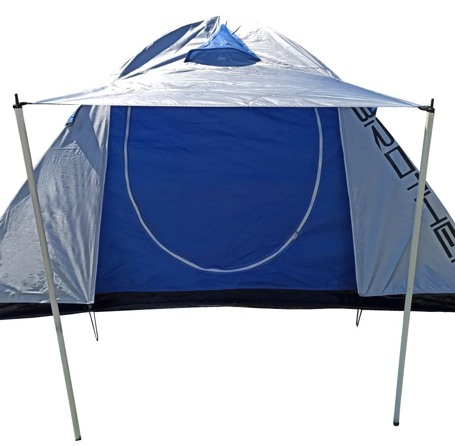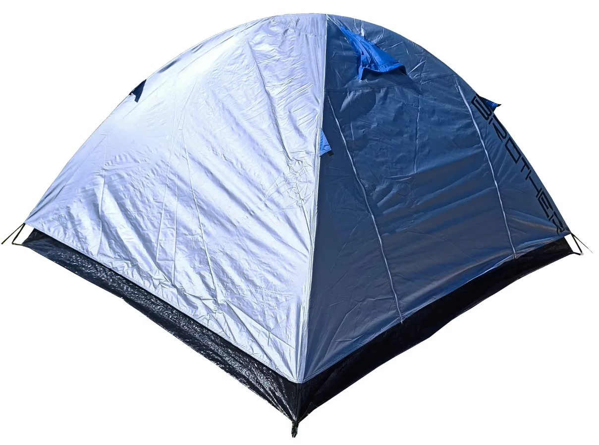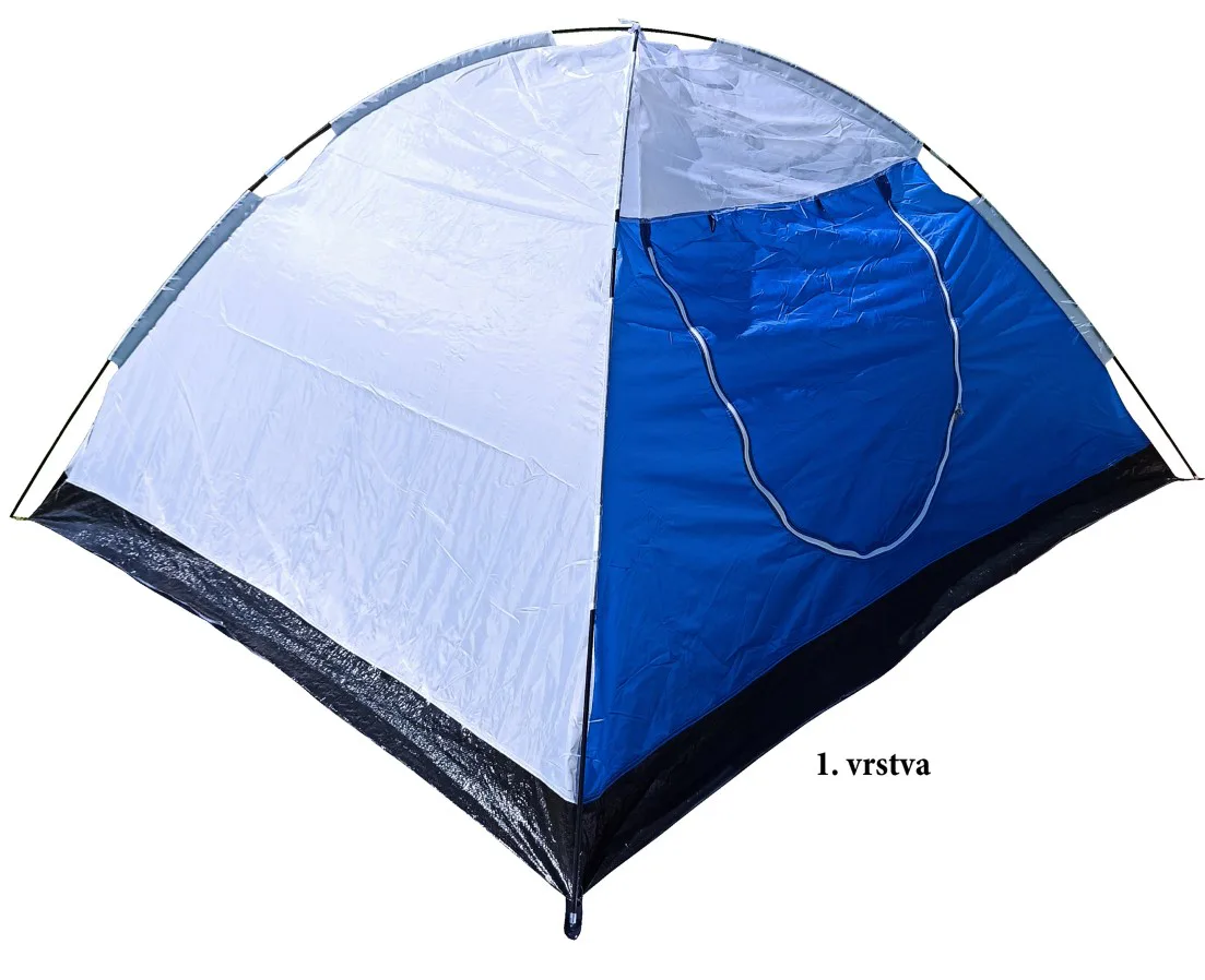 Turistický stan ACRA ST04 pro 4 osoby - kopule dvouplášťová (oddělená ložnice od vrchního pláště), stříbrný potah na vrchním plášti snižuje vnitřní teplotu uvnitř stanu za slunečných dní o 6 - 10 stupňů. Podlepené švy zabraňují průniku vody dovnitř stanu při dešti.