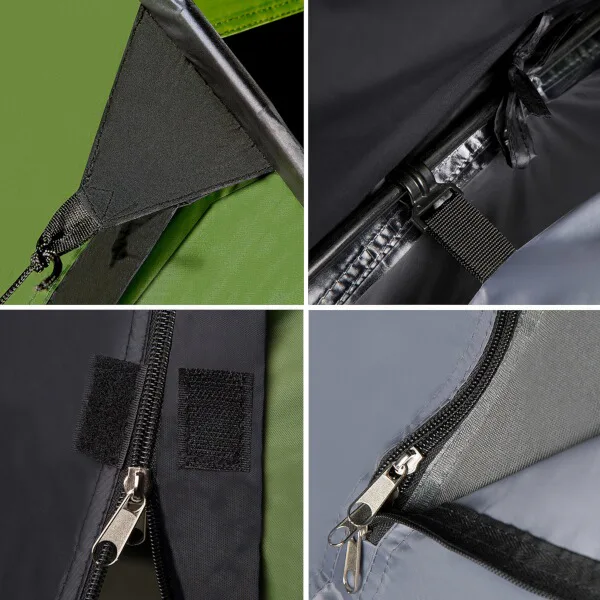 Do stanu se vstupuje přes předsíňku. Čelní vchod se otevírá pomocí dvou samostatných zipů a otevřený panel lze srolovat a zajistit poutky, boční vchod se otevírá pomocí jednoho zipu a otevřený panel lze srolovat ke straně a také připevnit poutky. Vchod do ložnice je vybaven jak plachtou, tak moskytiérou. Vnitřní stan dále disponuje zadním větracím otvorem, který je také opatřen moskytiérou, ve středu "stropu" je navíc poutko pro zavěšení svítilny. Po stranách ložnice se nachází 2 kapsy pro odložení telefonu, peněženky apod..