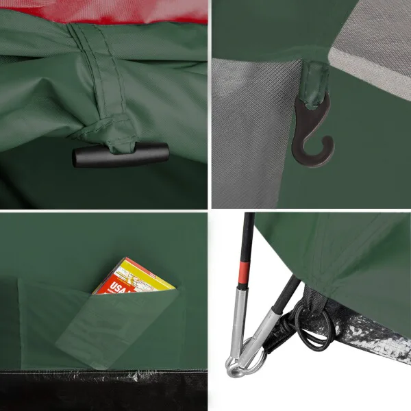 Do stanu se vstupuje přes předsíňku a zadním vchodem přímo do ložnice. Čelní vchod se otevírá pomocí dvou samostatných zipů a otevřený panel lze srolovat a zajistit poutky, zadní vchod se otevírá pomocí jednoho zipu a volné panely lze srolovat ke straně a také připevnit poutky. Vchody do ložnice jsou vybaven jak plachtou, tak moskytiérou. Vnitřní stan dále disponuje větracím otvorem, který je také opatřen moskytiérou, ve středu "stropu" je navíc poutko pro zavěšení svítilny. Po stranách ložnice se nachází 2 kapsy pro odložení telefonu, peněženky apod..