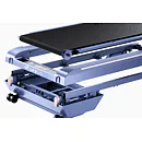 Pás není vybaven bočními madly, díky čemuž se hodí pro aktivní práci u stolu. I přes odlehčenou konstrukci působí pás při běžném použití dostatečně stabilně, a navíc jej snadno přenesete díky nízké hmotnosti a transportním kolečkům.