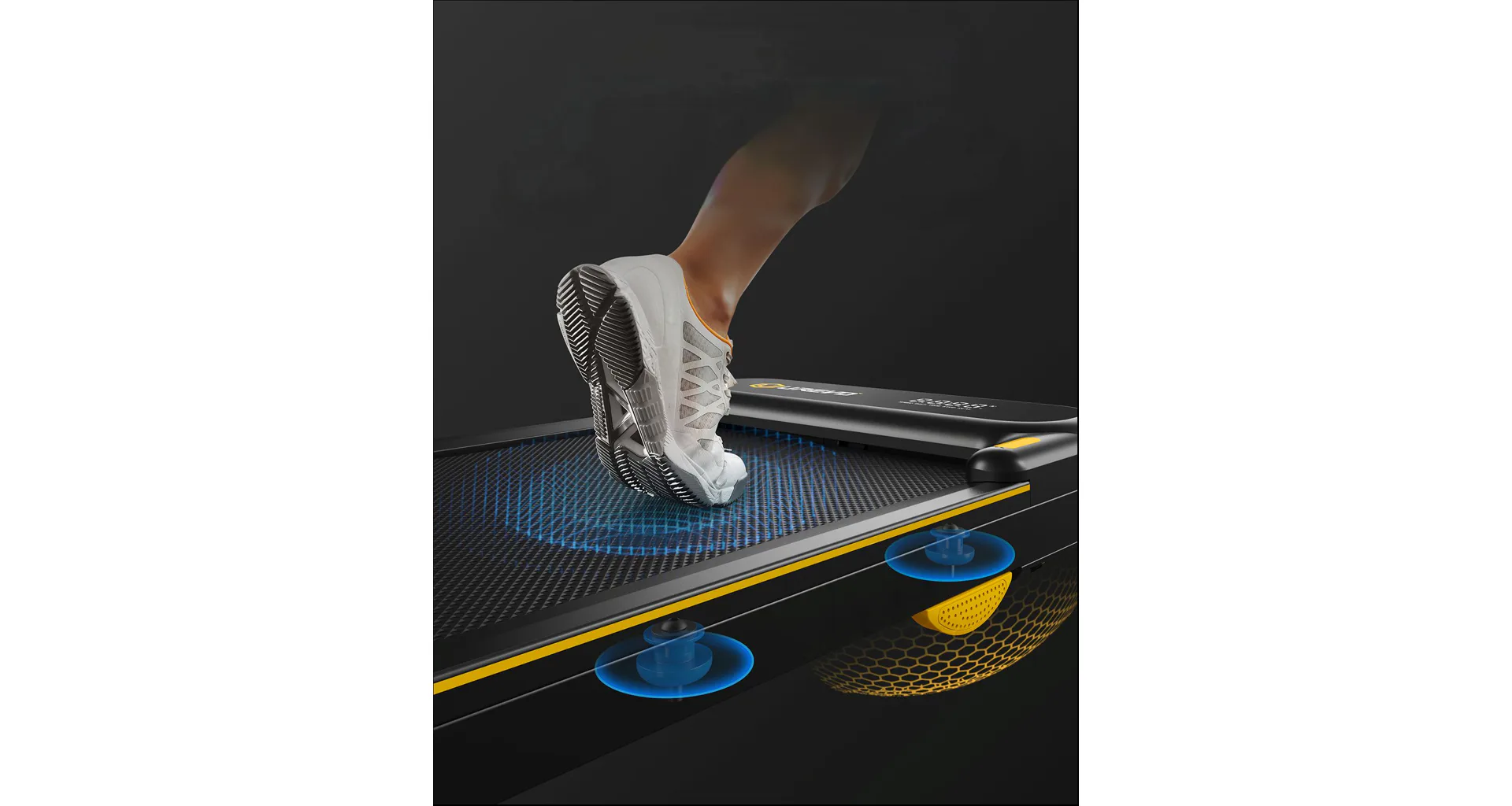 UREVO Strol 2E nabízí běžeckou plochu o rozměrech 102 × 38 cm, která poskytne dostatek prostoru pro chůzi i běh. Systém odpružení pomáhá tlumit nárazy při došlapu. Trenažér disponuje motorem s maximálním výkonem 2,5 HP, který umožňuje nastavit rychlost od 1 do 10 km/h. To odpovídá plnohodnotnému využití – pro chůzi nebo mírný klus.