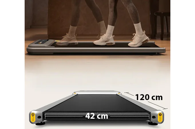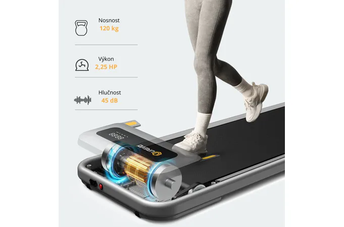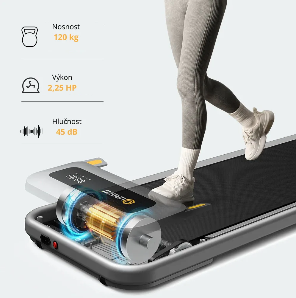 UREVO Strol U1 nabízí běžeckou plochu o rozměrech 120 × 42 cm, která poskytne dostatek prostoru pro pohodlnou chůzi. Systém odpružení pomáhá tlumit nárazy při došlapu. Trenažér disponuje motorem s maximálním výkonem 2,25 HP, který umožňuje nastavit rychlost od 0,8 do 6 km/h. To odpovídá spíše rekreačnímu využití – pro chůzi nebo mírný klus.