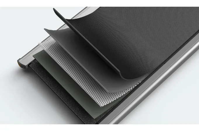 Pás není vybaven bočními madly, díky čemuž se hodí pro aktivní práci u stolu. I přes odlehčenou konstrukci působí pás při běžném použití dostatečně stabilně, a navíc jej snadno přenesete díky nízké hmotnosti a transportním kolečkům.