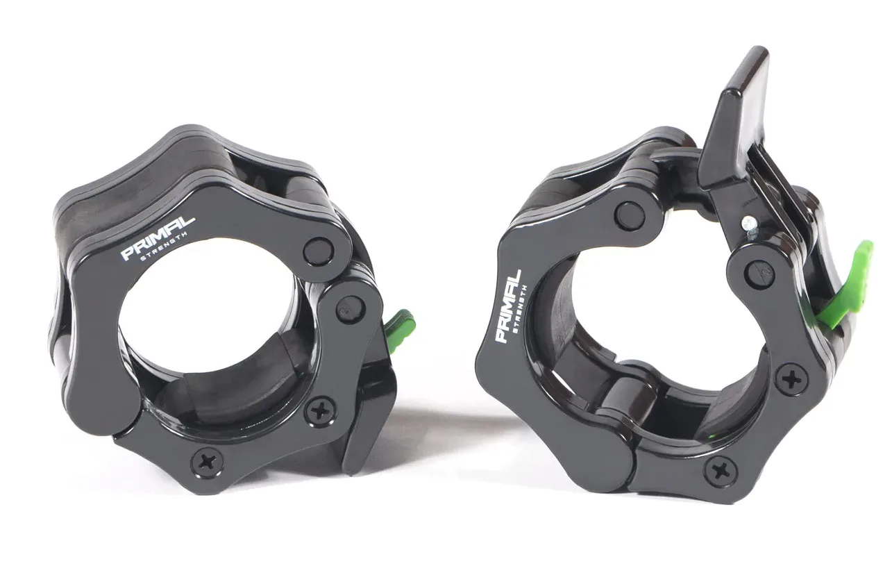 Uzávěry na činku pákové PRIMAL Lock Jaw slouží jako nepostradatelný doplněk ke vzpěračské tyči nebo jednoručním hřídelím o průměru 50 mm, které nemají závit. Tělo objímky je kompletně z velmi pevného plastu. Rychloupínací systém poskytuje snadné a rychlé nasazování na hřídel a z hřídele. I přesto, že je objímka velice pevná, téměř nic neváží. Díky tomu nebudou hmotnosti na vzpěračských tyčích zkreslovány. Pro tyto vlastnosti jsou pákové rychlouzávěry PRIMAL Lock Jaw ideálním řešením do každé posilovny.