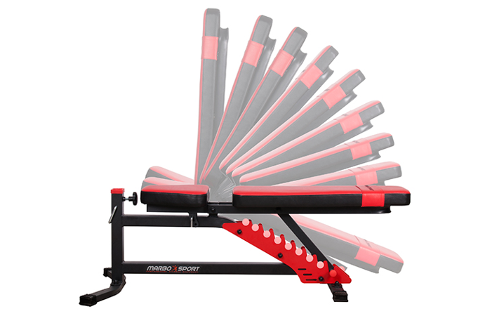 Víceúčelová lavice MARBO MS-L102 určená na cvičení s činkami, uspokojí i ty nejnáročnější uživatele. Vyrobeno v Polsku z oceli té nejvyšší kvality. To umožňuje uživatelům provádět cviky s nastavením opěry(v rozsahu od -25 do 80°) nebo sedátka (od 0 do 25). To dává možnost cvičit různé svalové skupiny a zároveň zajistit maximální bezpečnost. Komfort a čalounění kopírující tvar těla uživatele. MARBO MS-L102 má práškový lak.