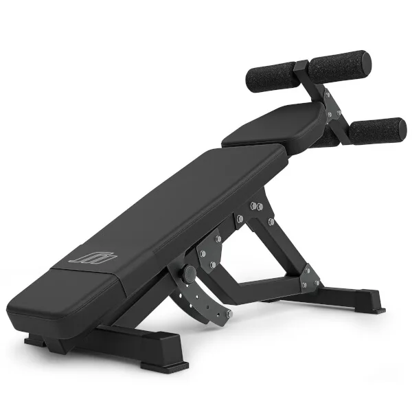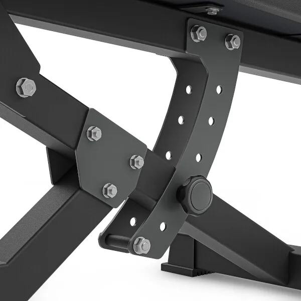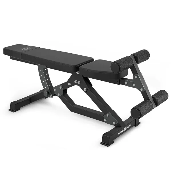 Variabilní, posilovací lavice MARBO Sport MS-L110 ve verzi 2.0, je díky své univerzálnosti skvělá na procvičení skoro celého těla, díky negativnímu úhlu, můžeme odcvičit břišní svaly, i tlaky na spodní část prsou a mnoho dalších cviků.Je dovedena téměř k dokonalosti. Rám je vyroben na precizních CNC strojích z ocelových profilů o rozměru 50 x 50 x 2 milimetry, tento postup výroby zaručuje vysokou přesnost, stabilitu a nosnost výsledné konstrukce. Změna úhlu lavice se provádí naklopením opěry do úhlu 0°, -8°, -15°, -22° nebo - 28° a následným zajištění profilů regulace pomocí šroubu s velkou ergonomickou maticí.