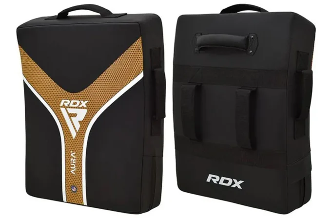 Velká lapa na kopy RDX AURA plus T-17 je robustní tréninková pomůcka určená pro nácvik silných kopů i úderů. Využijí ji sportovci všech úrovní při tréninku bojových sportů, jako je MMA, Muay Thai nebo kickbox. Vyrobený je z odolné syntetické kůže Maya Hide, vyniká vysokou životností a odolností vůči praskání či jinému opotřebení. Vnitřní výplň tvoří kombinace vrstev DenZo-Tron a Sponge X pěny, která perfektně tlumí nárazy a zajišťuje maximální ochranu pro trenéra i cvičence. Pro lepší manipulaci a stabilní úchop jsou na lapě umístěny pevné úchyty s trojitým prošitím.