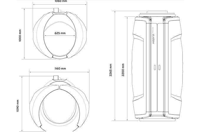 Vzhledem k speciálnímu mechanismu otevírání dveří je solárium velmi prostorově úsporné. Součástí je madlo a podlaha, která slouží k zvýšení pozice při opalovaní. Digitální displej umožňuje velmi snadno a přehledně používat menu. Pomocí interního časovače a počítadla provozních hodin budete mít solárium neustále pod kontrolou.